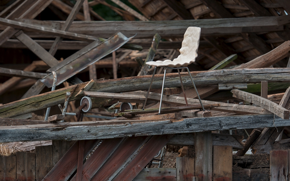 旋转椅在层胶压缩成型白蜡木。制成的普通(未3D)单板彩色的或天然的涂漆了绿色铬,铬III或上漆的钢。