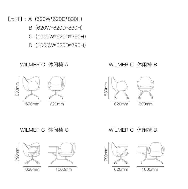 WILMER C 休闲椅 系列尺寸/示意图