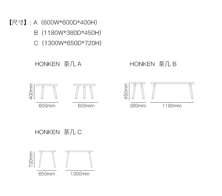 HONKEN 茶几 系列尺寸/示意图