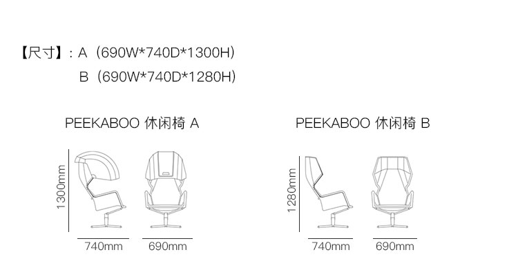 PEEKABOO 休闲椅 系列尺寸/示意图