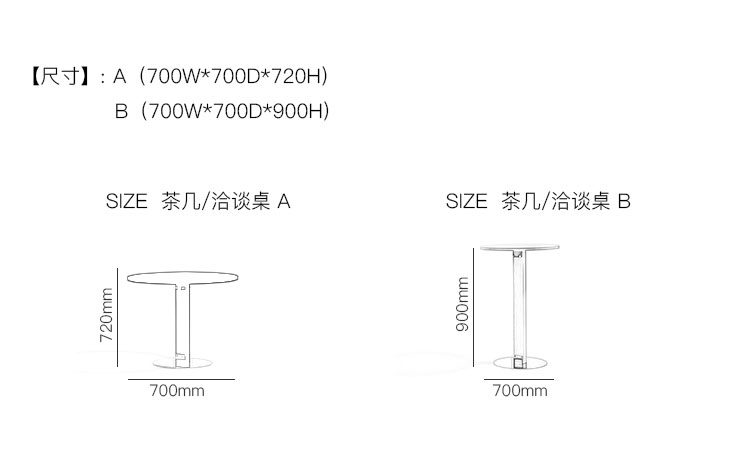 SIZE 茶几/洽谈桌 系列尺寸/示意图