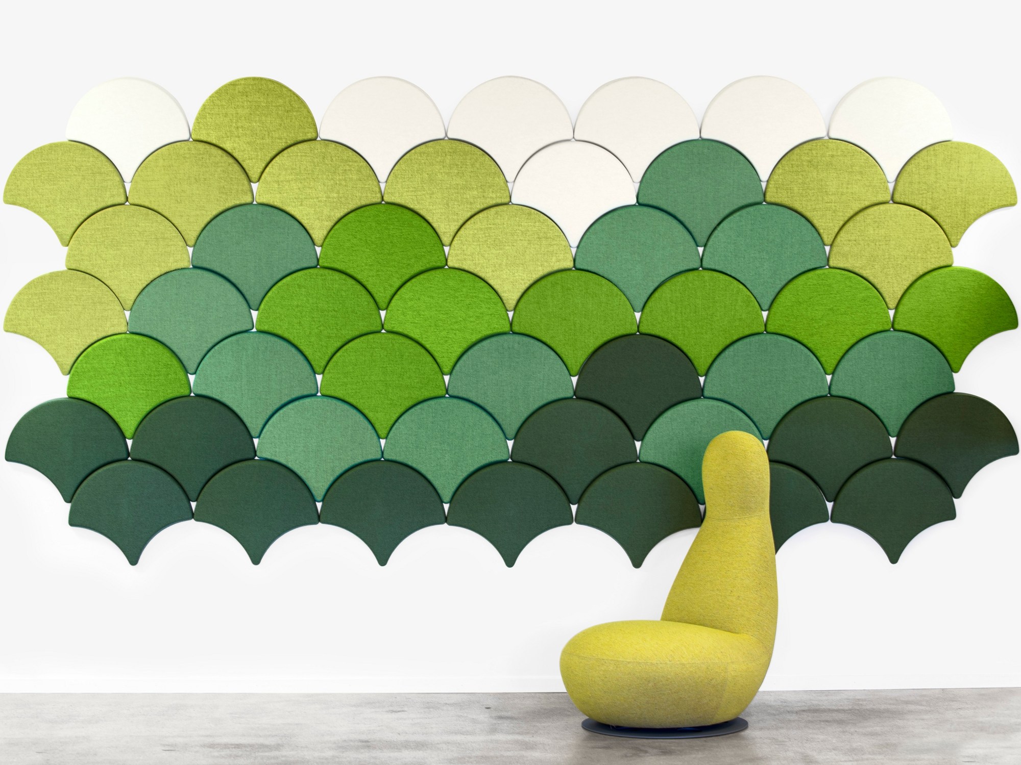 银杏是一种吸引人的吸音解决方案,将日本传统与欧洲当代风情融为一体。银杏激发您梦想大自然,并将世界上最令人惊叹的风景带入您的室内环境。银杏在多云的天空中冬天或秋天时一片森林。仅仅通过改变颜色,这种简单的形状就可以变形为数以百万计的鼓舞人心的风景。银杏吸音板可减少室内噪音和回声。银杏安装在。壁在吸音板热压100%聚酯形式毛毡标准颜色:。灰白色,浅灰色,灰色,无烟煤表面可在其它颜色被层压