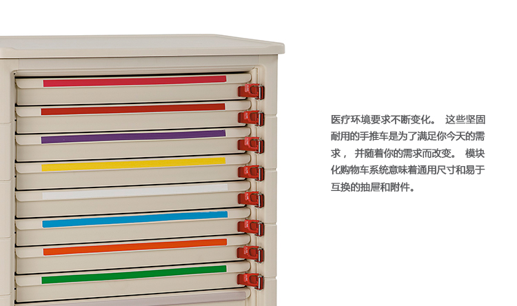 医疗环境要求不断变化。这些坚固耐用的手推车是为了满足你今天的需求,并随着你的需求而改变。模块化购物车系统意味着通用尺寸和易于互换的抽屉和附件。