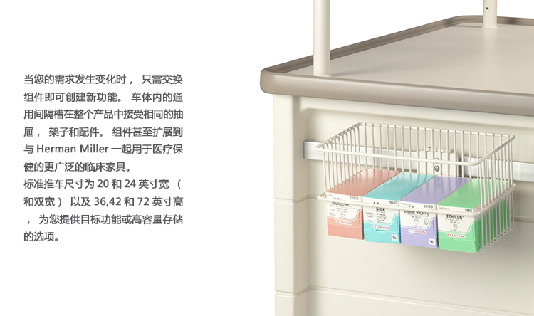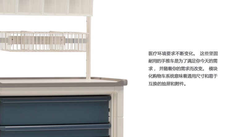 医疗环境要求不断变化。这些坚固耐用的手推车是为了满足你今天的需求,并随着你的需求而改变。模块化购物车系统意味着通用尺寸和易于互换的抽屉和附件。
