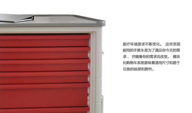 医疗环境要求不断变化。这些坚固耐用的手推车是为了满足你今天的需求,并随着你的需求而改变。模块化购物车系统意味着通用尺寸和易于互换的抽屉和附件。