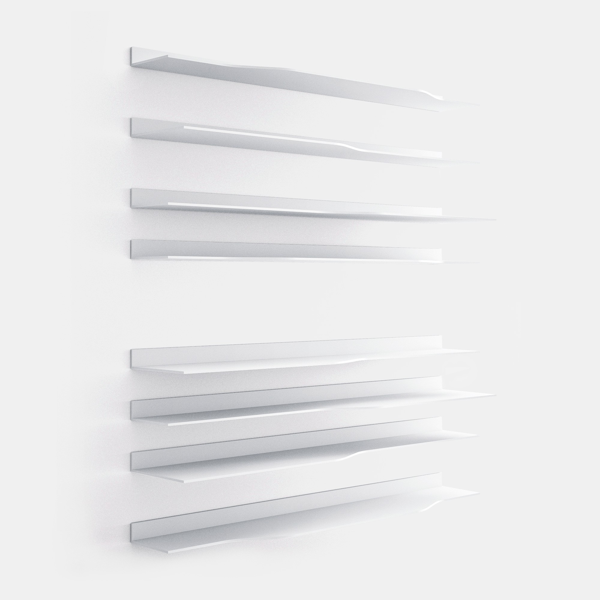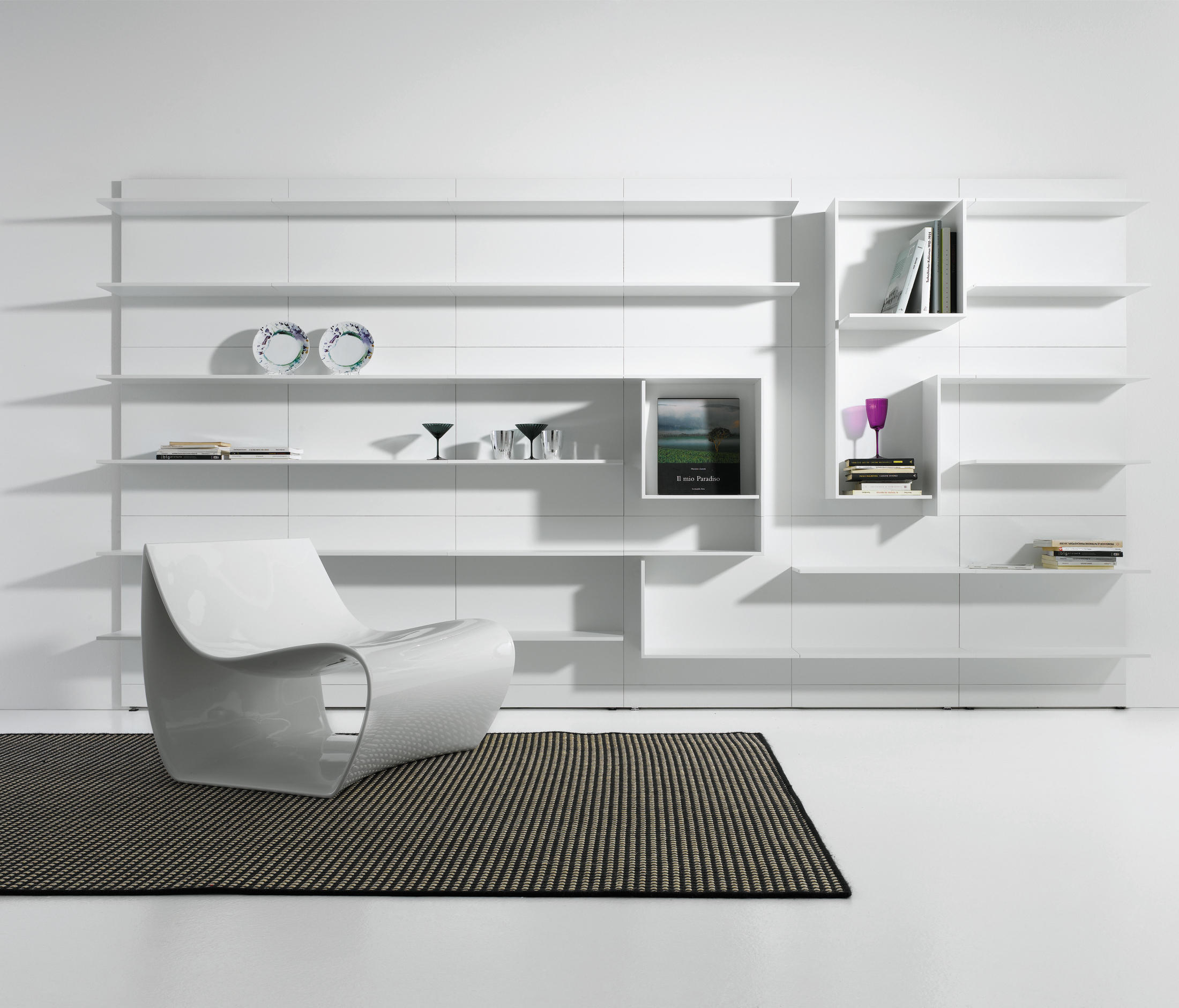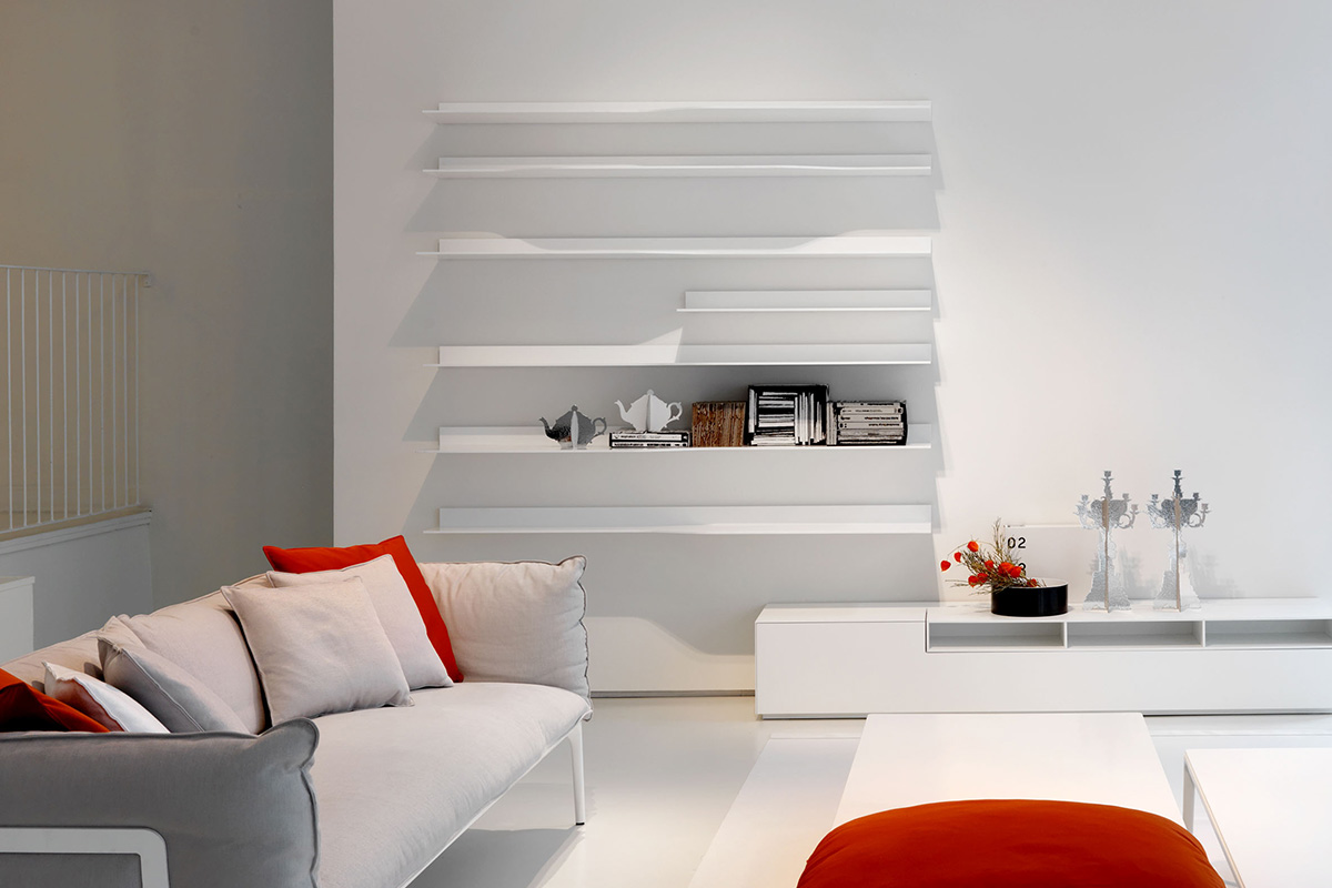 波浪壁系统,它允许开发不同的组合物,其是更受限制和稀有版,因此与少数元素使得系统更横向的房子内的非结构化版本。 视觉和功能特征保持不变,保持在设计和动态性质。原产品 搁架单元 货架由白色丙烯酸类固体表面的,厚9毫米。 一些搁板设有通过一个曲折的和精巧的设计连接深度(35/25 anD25 / 15厘米)的改变。 尺寸和类型: •L90和L180 cm矩形搁架单元,深15、25或35 cm •L90 cm前置式(左和右)搁架单元,深度可变,15/25 anD35 / 25 cm。 •L180厘米亲LED(左和右)搁置单位可变深度,35/25厘米。 •L180厘米亲率领搁架单元具有可变深度,25/35/25厘米。 他们也都在ELECTRI版版本:2个搁架单元(11.8厘米高),配备有用于电缆通道和隐藏后方的空腔。 在搁板的上部部分中,您ND对于由所述搁架的相同的材料制成的电缆管理的开口,以使向每一个可能的器具电缆出口尺寸和类型: •L180厘米亲导致ELECTRI编搁架单元具有可变深度25/35/25厘米 •L180厘米矩形ELECTRI ED搁架单元35厘米深。 可选管道,总是安装在牢固的表面上,以便在电视单元壁挂式安装时隐藏电缆。