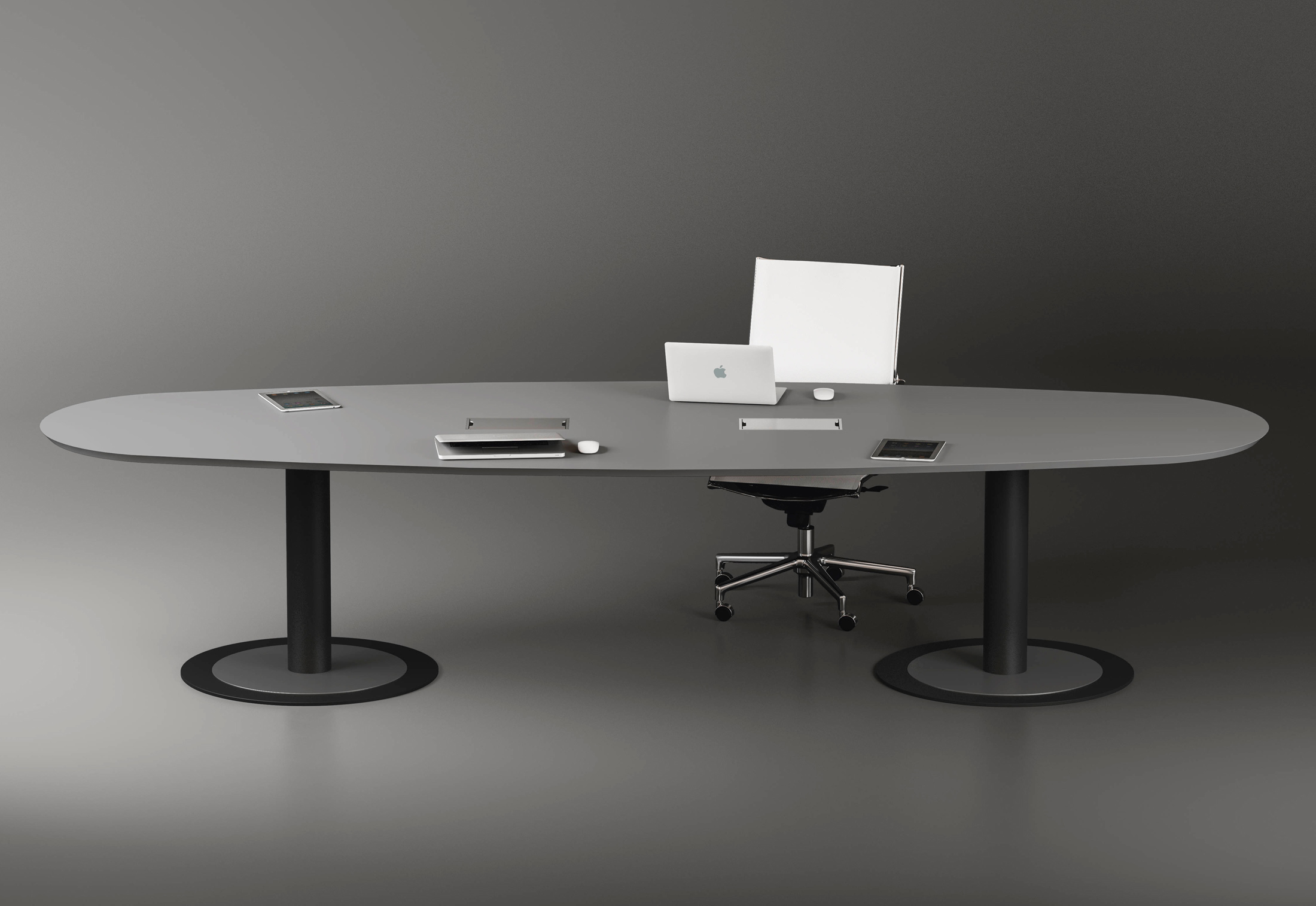 Fantoni提供一个完整的会议桌会议,会议桌有固定的顶部或模块化的形式,可以创建您自己的作品并满足最大范围的需求:从小型会议室到大型会议室。橡木,红色或棕褐色樱桃木或天然桦木。它们由圆盘形底座上的重要支柱支撑,均由钢制成。