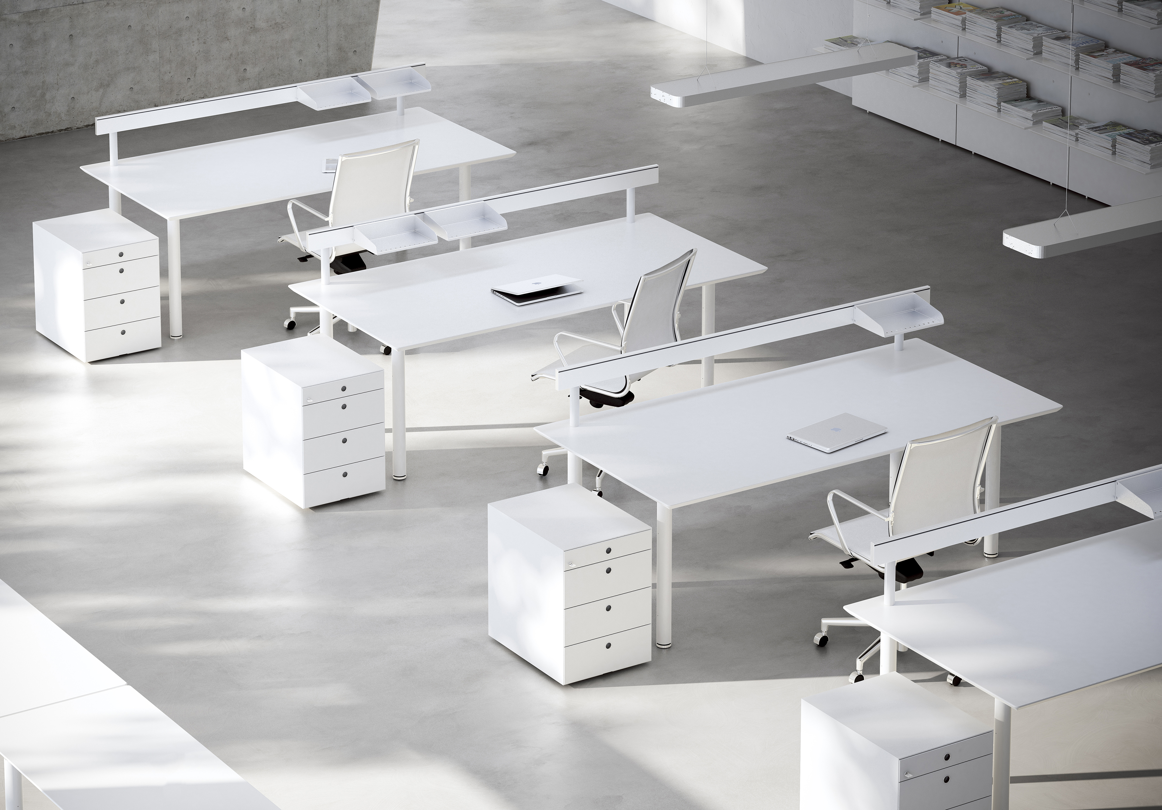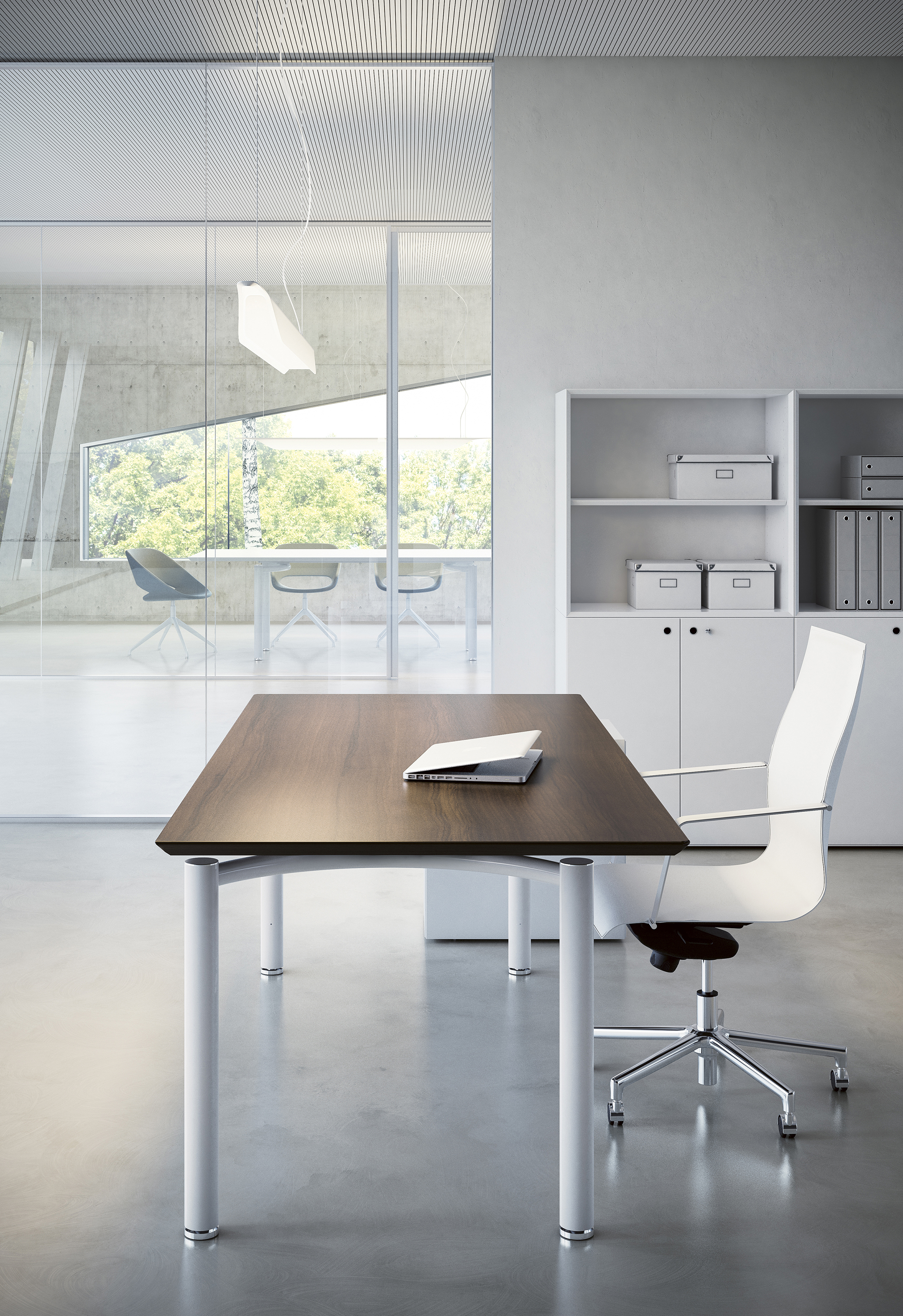 干净的几何线条使实用的人体工学家具具有流动性和优雅感。可用表面处理:白雪公主,石墨灰色,迷雾灰色,黑色,银色和胡桃木,营造出严谨而轻巧的风格。