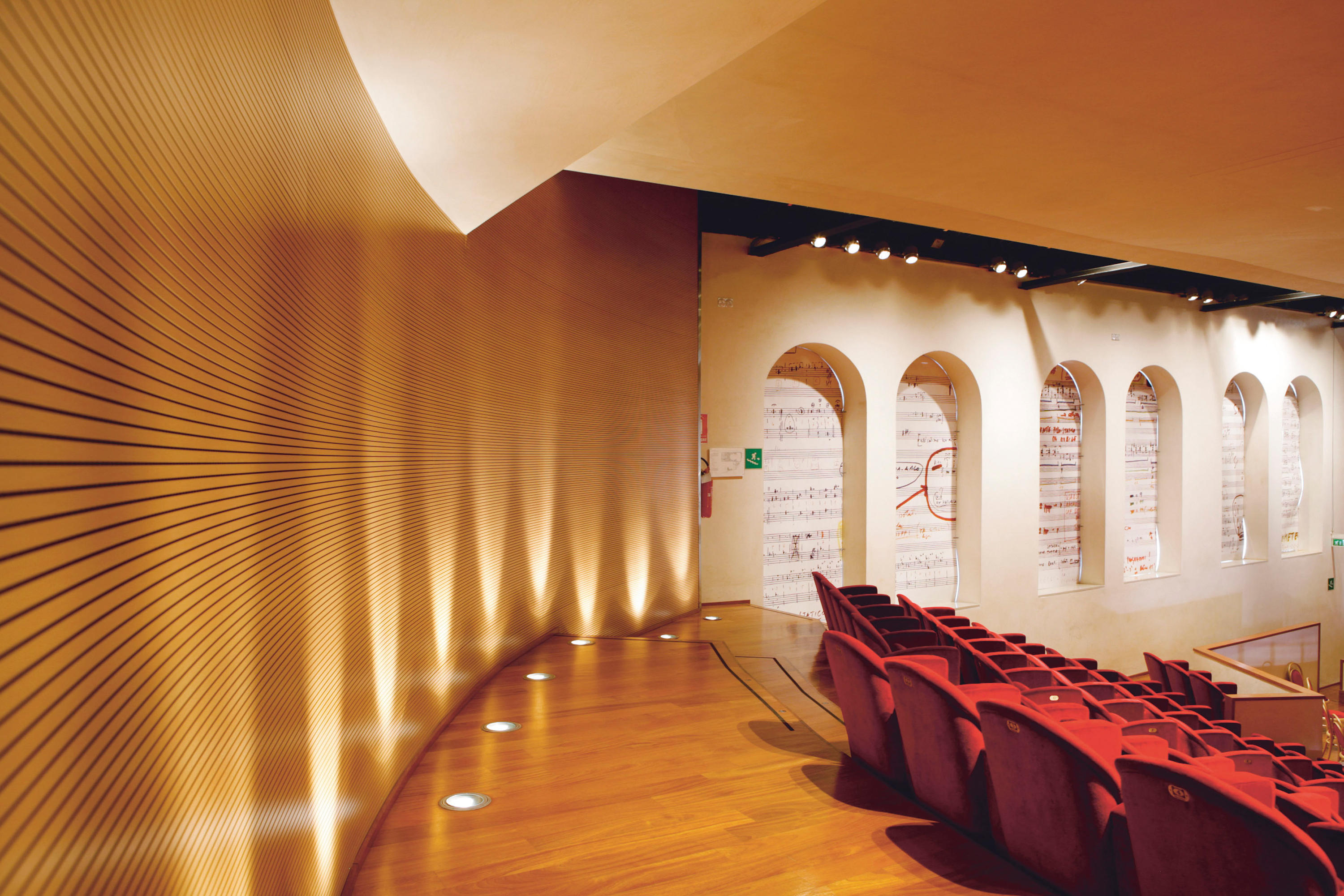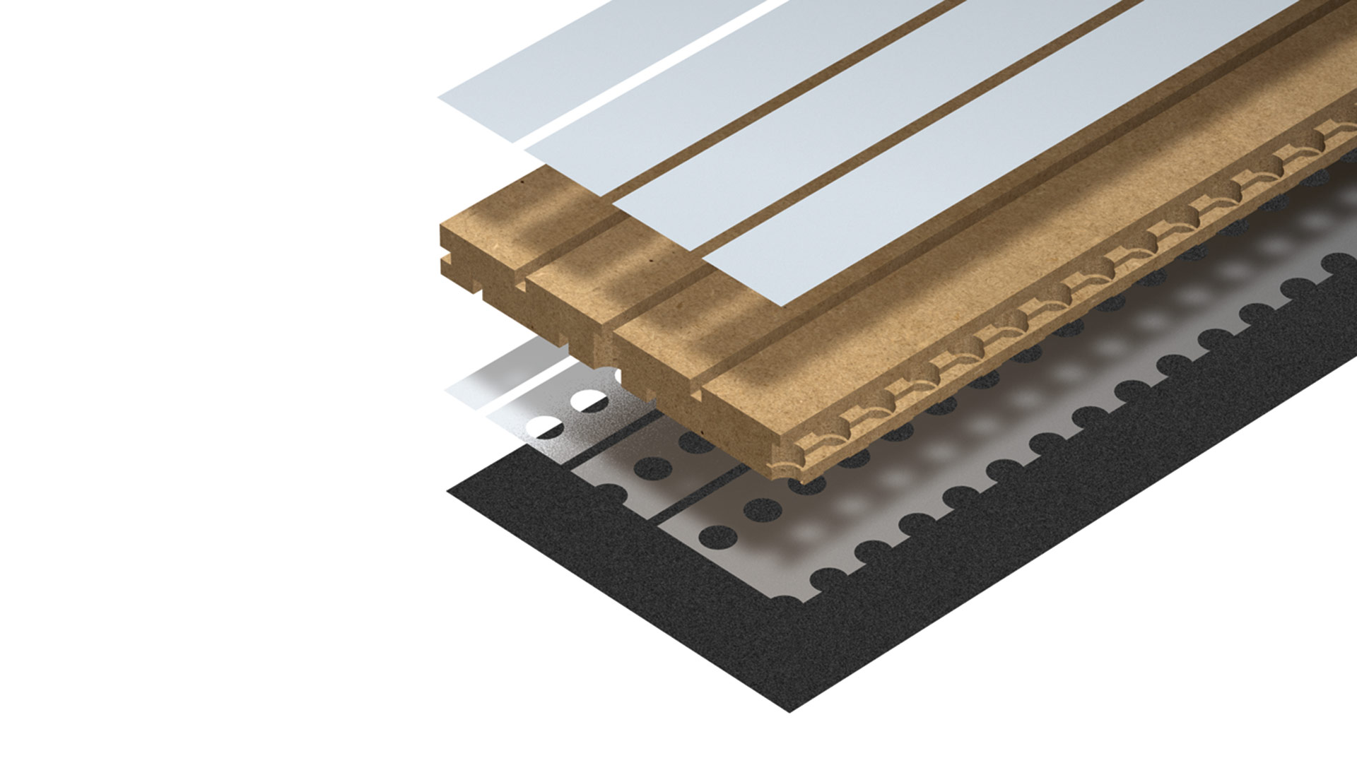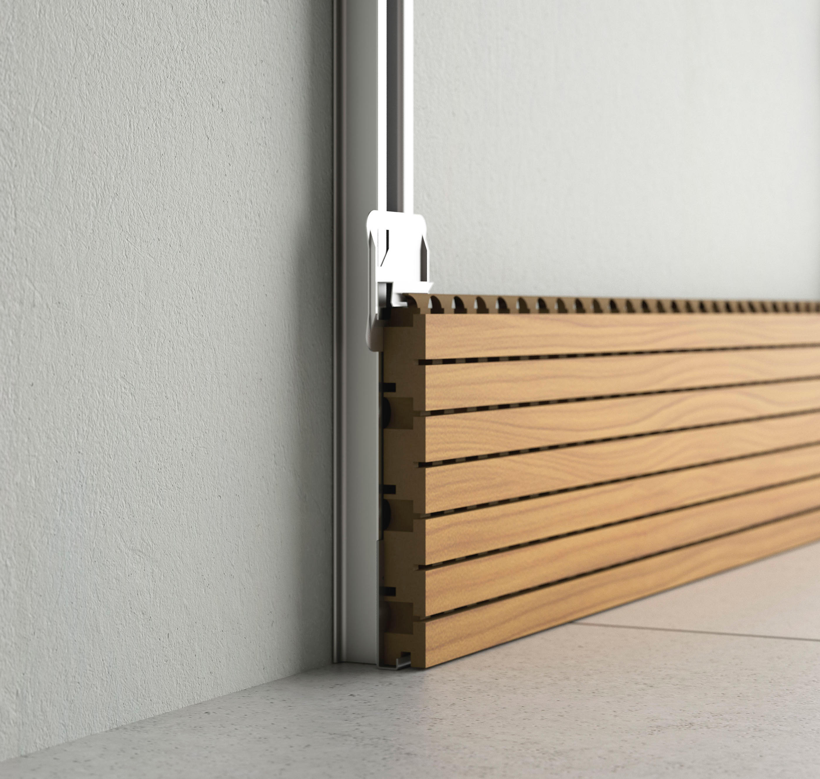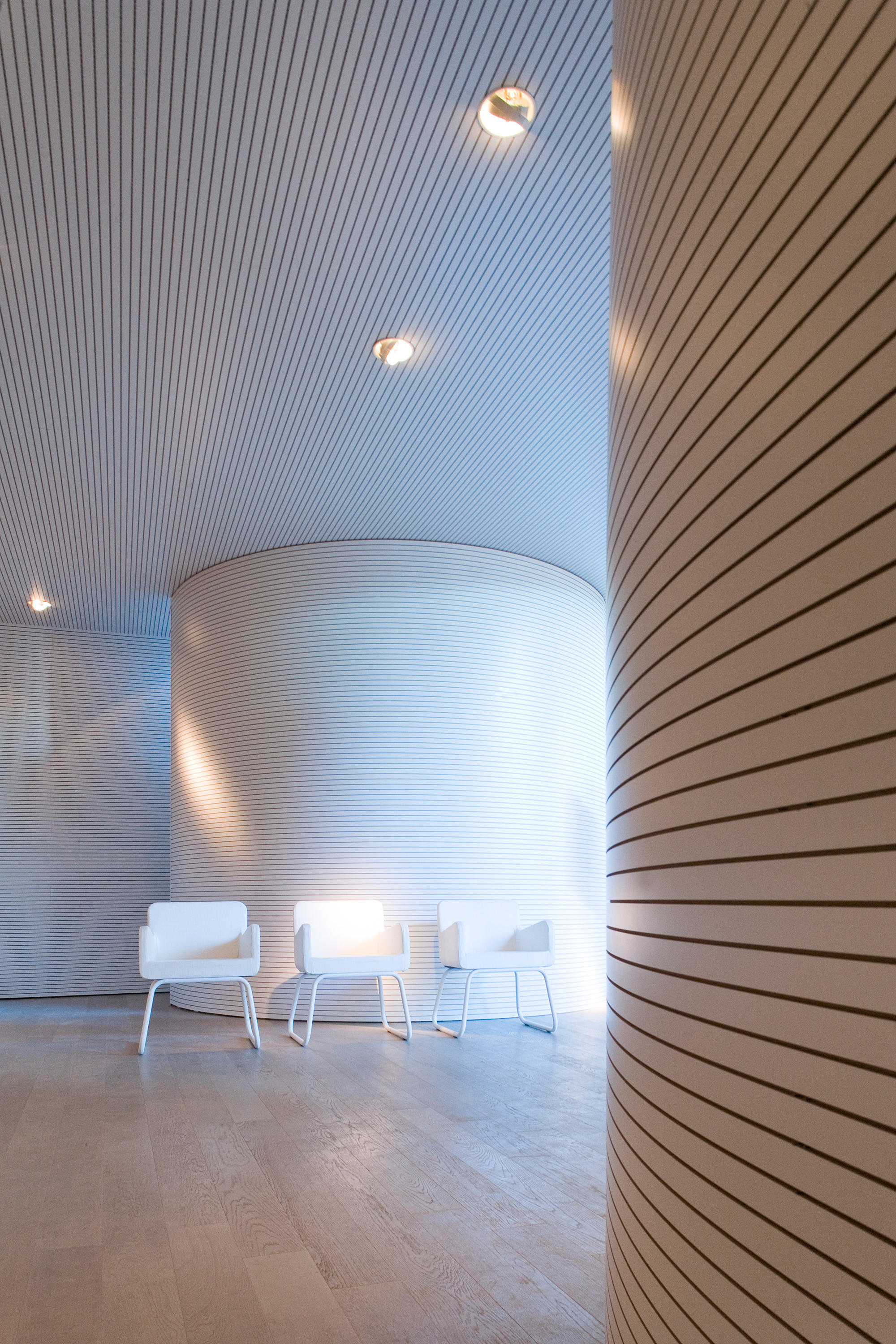 4akustik。 用于墙壁和天花板的吸音系统,包括三聚氰胺面,上光或贴面的MDF板条。 通过对亥姆霍兹共鸣器理论的研究以及使用多孔纹理的声音消散,可以实现较高的性能水平。 4akustik结合了出色的吸音性能和最高的健康与安全标准。 该面板在其EC认证版本中,由于其对火的反应而被分类为“ B-s2,d0”,并且由于其极低的甲醛含量,还符合高度严格的日本“ F4星”标准,符合 JIS参数。 同样的产品也可提供未经燃烧反应认证且甲醛排放量为E1级的版本。