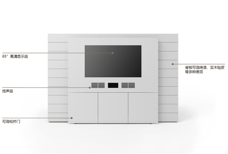 多媒体集成,背板有烤漆、实木贴皮,简约设计无限可能