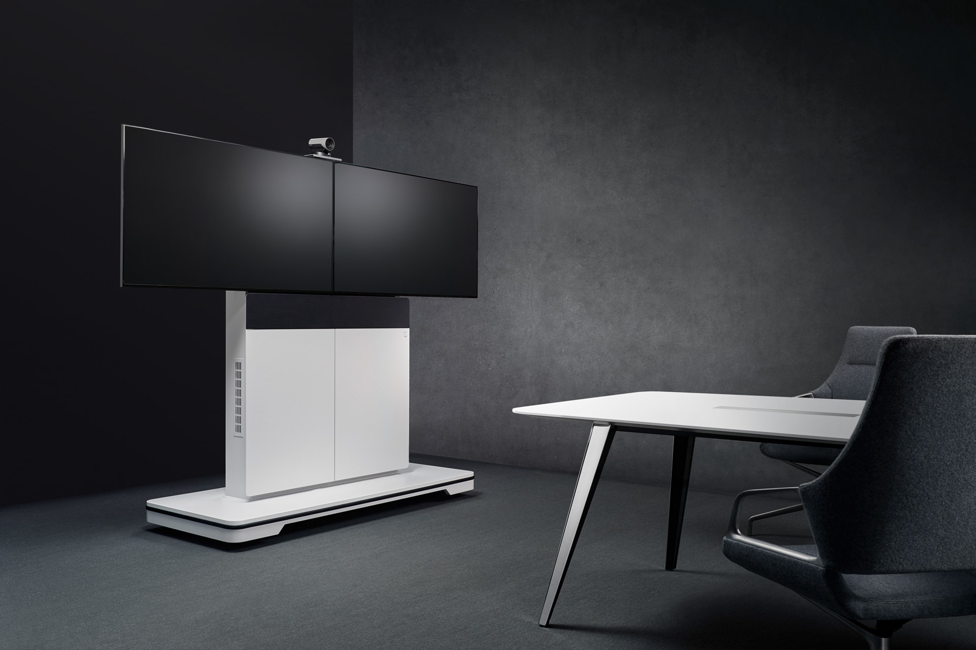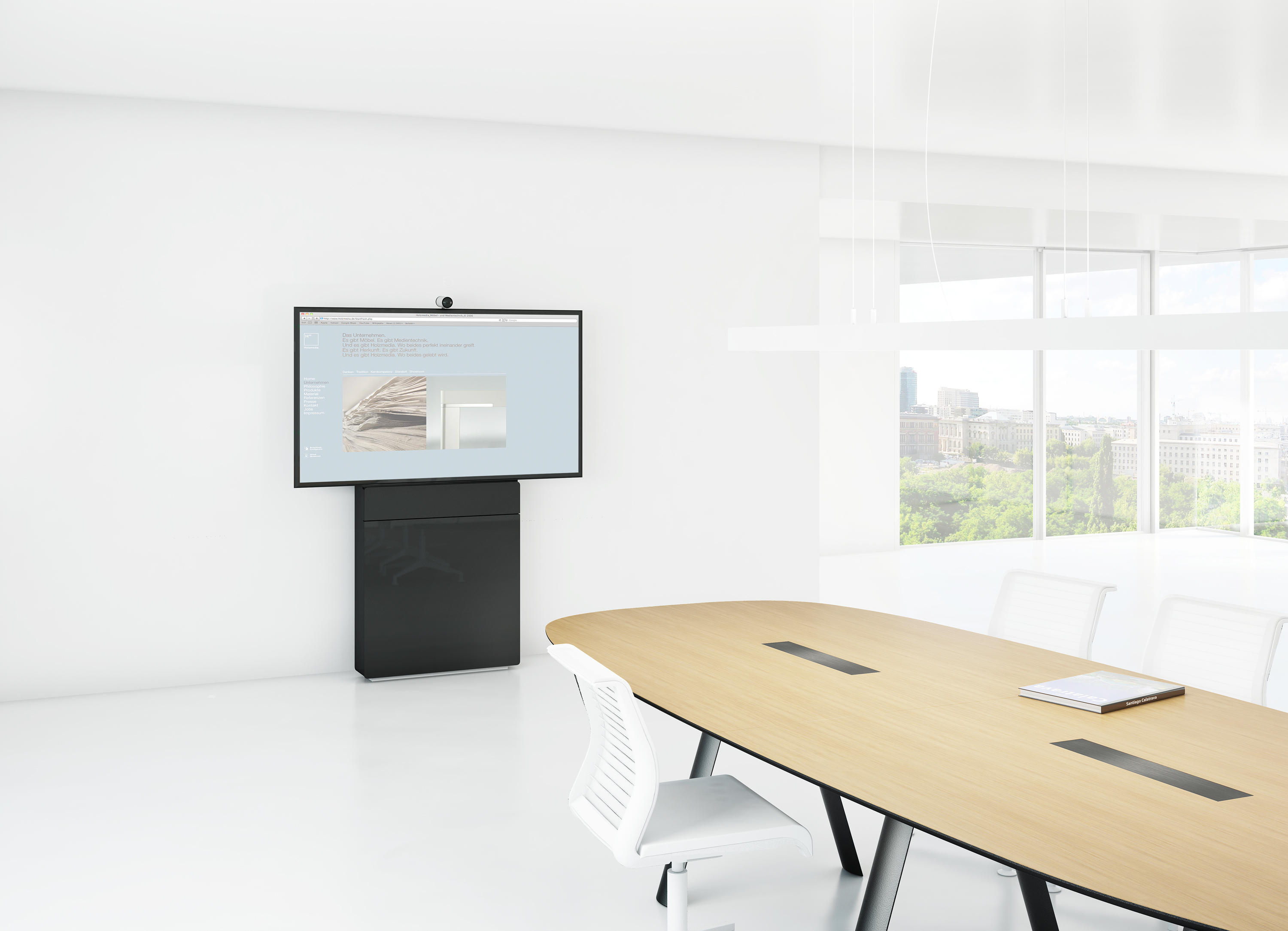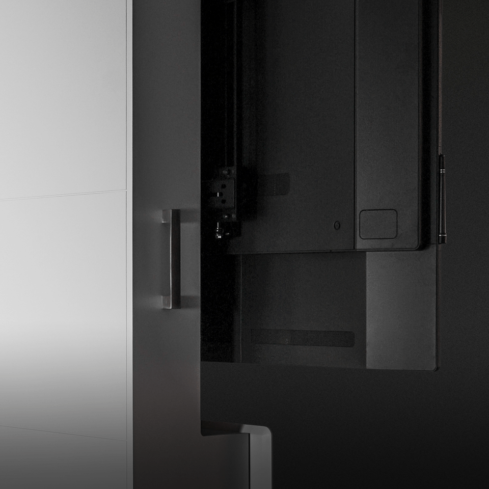 纤细的移动多媒体墙W8凭借着高功能性和灵活性的设计令人喜爱。集成的插头和播放控制系统提供了一个自由的多媒体方案,改变了用户的会议自由性。多种屏幕尺寸可供选择,适合于各种大小不同的会议室要求。