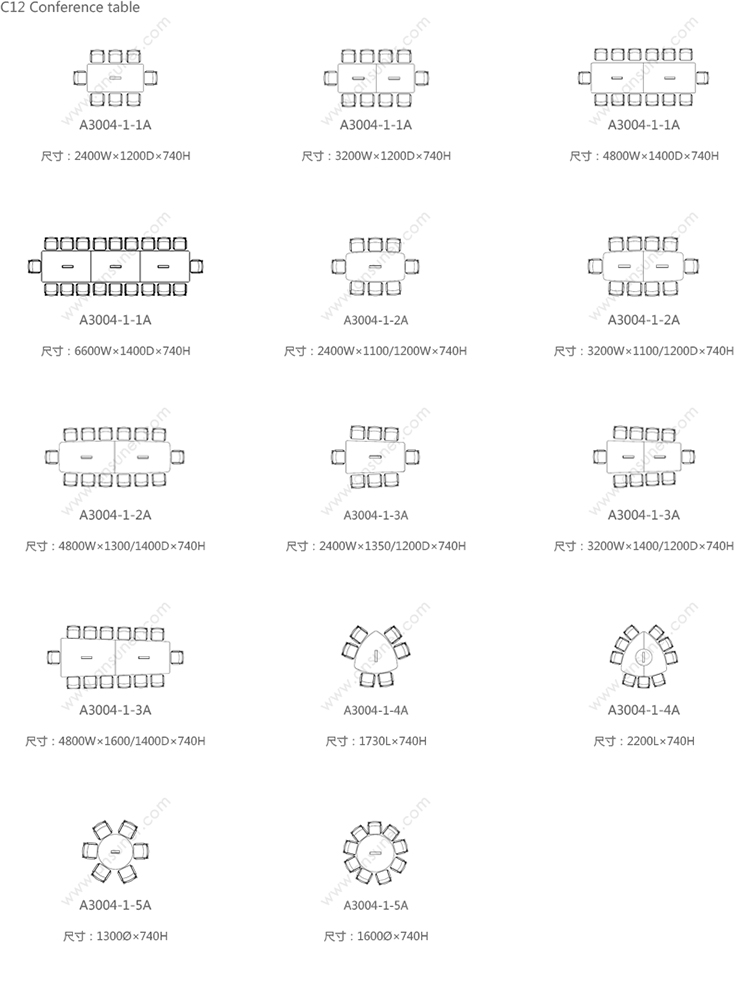 C12系列会议台系列 系列尺寸/示意图
