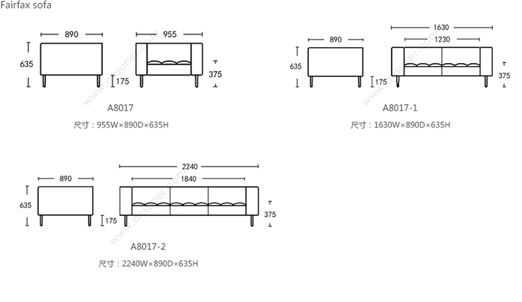 Fairfax 系列尺寸/示意图