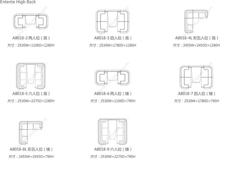 Entente Low Back 系列尺寸/示意图