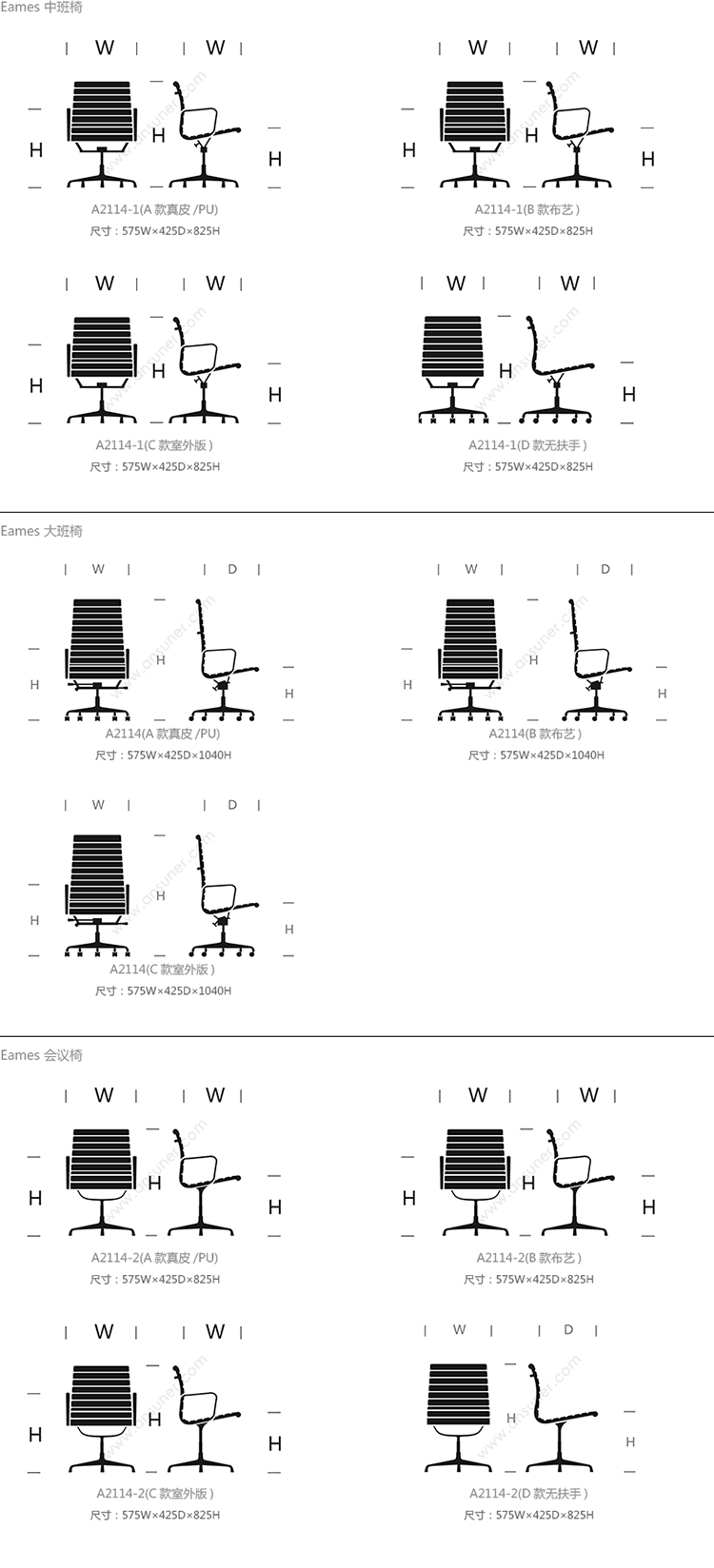 Charles与RayEames夫妇是20世纪最有影响力的华体会体育官方在线官网,卓越的设计涵盖了家具、建筑、影像与平面设计。他们从二次世界大战中美国海军的实验计画中学习经验并发展可谓是现今工业中使用模铸胶合版的先锋,这对设计界的超级夫妇档自1940年参与了由MOMA举办的有机家具设计大赛,自今已有近百件他们的作品被各大博物馆所永久典藏。 Eames® Soft Pad Side Chair(伊姆斯软包会议椅)是夫妻俩1958年设计的,是在全铝系列的基础上发展的另一系列Eames产品。舒适系列在全铝的椅架上增加了皮革制的柔软坐垫和靠背,高级铝合金制作,压模四星脚,可旋转。背垫和坐垫,采用西皮,具有透气性强,内部填充高密度定型绵,不易变形,不老化,依人体坐姿,符合人体工学,耐水及对人体无害等优势。椅子扶手选用优质电镀铝合金扶手,手感舒适,永久不生锈。转椅底盘为多功能底盘,可以保护使用者长时间坐用腿部健康,且作为高度可多定位调节。气压棒采用的气杆是正规厂家出产的外贸气杆,每一根气杆都有钢印,经过严格SGS检测的才可出厂,旋转、升降自如基本无声响,使用寿命长,可承受250kg,可升降数万次,将椅面调至与膝盖同高时,使用者坐下后双脚跟可垂直平放于地上,且大腿与地面平行,最符合人体工学理论,使用者长期久坐,也不想疲惫。办公椅脚为铝合金材质永久不生锈、承受能力强,安全更放心。椅子脚轮采用优质电镀片脚轮,耐用而美观,可以随意变换位置,贴心更方便,具有防震及防松脱,让椅子的安全性能更加可靠。