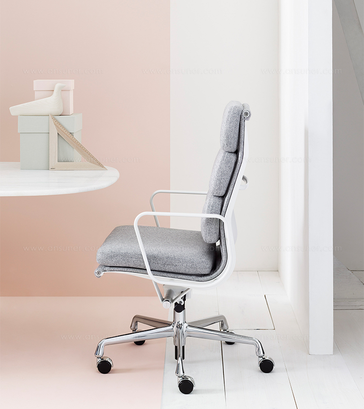 Charles与RayEames夫妇是20世纪最有影响力的华体会体育官方在线官网,卓越的设计涵盖了家具、建筑、影像与平面设计。他们从二次世界大战中美国海军的实验计画中学习经验并发展可谓是现今工业中使用模铸胶合版的先锋,这对设计界的超级夫妇档自1940年参与了由MOMA举办的有机家具设计大赛,自今已有近百件他们的作品被各大博物馆所永久典藏。Eames® Soft Pad Executive Chair(伊姆斯软包大班椅)是夫妻俩1958年设计的,是在全铝系列的基础上发展的另一系列Eames产品。舒适系列在全铝的椅架上增加了皮革制的柔软坐垫和靠背,高级铝合金制作,压模五星脚,可旋转。背垫和坐垫,采用西皮,具有透气性强,内部填充高密度定型绵,不易变形,不老化,依人体坐姿,符合人体工学,耐水及对人体无害等优势。椅子扶手选用优质电镀铝合金扶手,手感舒适,永久不生锈。转椅底盘为多功能底盘,可以保护使用者长时间坐用腿部健康,且作为高度可多定位调节。气压棒采用的气杆是正规厂家出产的外贸气杆,每一根气杆都有钢印,经过严格SGS检测的才可出厂,旋转、升降自如基本无声响,使用寿命长,可承受250kg,可升降数万次,将椅面调至与膝盖同高时,使用者坐下后双脚跟可垂直平放于地上,且大腿与地面平行,最符合人体工学理论,使用者长期久坐,也不想疲惫。办公椅脚为铝合金材质永久不生锈、承受能力强,安全更放心。椅子脚轮采用优质电镀片脚轮,耐用而美观,可以随意变换位置,贴心更方便,具有防震及防松脱,让椅子的安全性能更加可靠。