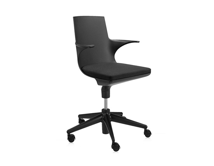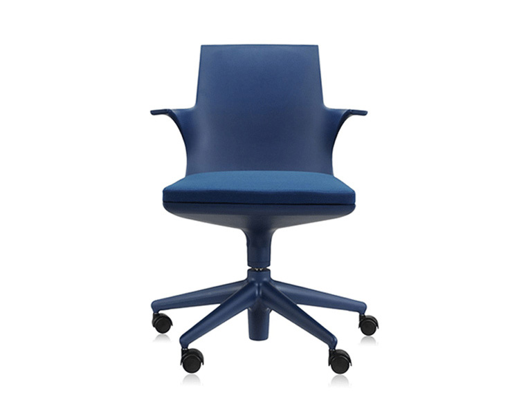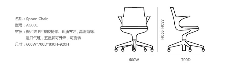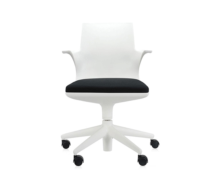 Spoon Chair(汤匙椅)是由意大利华体会体育官方在线官网Antonio Citterio于2002年为Kartell公司设计的,纤细弯曲的线条勾勒出类似于勺状的外型,配置两个舒适的扶手。此凳的创新之处在于连接座身与凳腿的一个支撑部分,其主要依靠一个由塑胶材料制成的弹性弯曲装置,其可以抵抗重量所带来的压迫与张力;另一个支撑是一个把手的形状,其安放在凳腿的下部,是一个可调节的气压泵装置。因此,其可以在56-76cm之间进行上下调节。Spoon Chair(汤匙椅)是一个将工业科技运用到设计领域的具体实例,其座身、凳腿及底座都是由多种颜色的热塑性塑胶材料制成,中间的茎干(只有当凳子升到最高位置时才会看到)是由阳极氧化铝制成。其颜色分为:白色、黑色、红色、银灰色等。Spoon Chair(汤匙椅)适用于多种不同的环境使用:家庭、办公室、酒吧、时尚餐厅等。