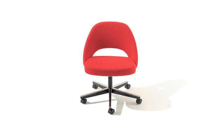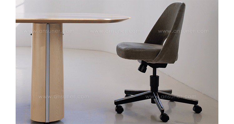 In his groundbreaking collection of 1957,Eero Saarinen transformed executive seating into a fluid,sculptural form.Recognizing the importance of user comfort,Saarinen became the first to construct a chair shell from fiberglass,a pliable material that flexes the In response to body weight. The chair is available with and without very different,and the features metal or wood legs,or a swivel base.The armless chair with a plastic back, ideal for cafe applicatons,is a recent reintroduction.