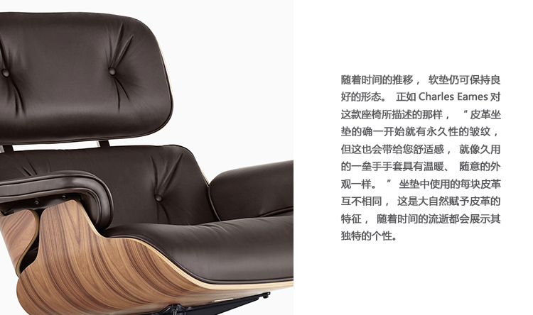 1956年知名由夫妻档华体会体育官方在线官网Charles & Ray Eames发表的lounge chair&Ottoman历经50多年的岁月,仍被视为现代家具史上最重要的经典设计家具之一,已经成为美国最重要的现代艺术博物馆MOMA的永久收藏品;椅子的压铸铝制部分则是以铝合金镀鉻,让整体视觉呈现轻盈興现代感.