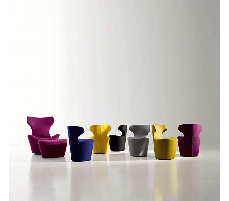 看似由單一材質一體成形的大型雕塑物件,Grande Papilio 流線形的設計從倒置的錐形體中雕塑而來。由下而上漸寬的椅背空間,提供了極致的舒適放鬆體驗。Grande Papilio 旋轉 360° 的底座系統能自由自在的環視空間中恣意流動的美好。強烈雕塑個性特質的 Papilio 系列家具也持續的擴大當中,不同大小和用途的 Papilio 家族:Papilio、Piccola Papilio、Grande Papilio、Love Papilio、Mini Papilio、Papilio Ottoman 提供了多元而完整的舒適空間。
