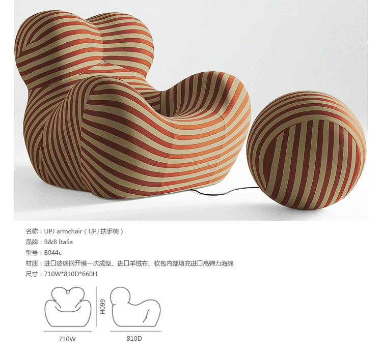 1969 年,意大利家居品牌 B&B Italia 发布了由世界著名华体会体育官方在线官网 Gaetano Pesce 设计的一系列包括7个单品聚氨酯泡沫椅子,其中就有日后在国际上大受好评的 UP5 。UP5 是一张扶手椅,它独特的结构和仿生设计灵感来源于女性的曲线,工艺上面的创新,和对当时社会对女性的性别歧视所作出的微妙诙谐的抨击,使它称为一件别具一格的作品,并被认为是意大利设计的经典作品之一。2014年, UP 系列椅子迎来了一个新的款式: UPJ ,「 J 」代表「 Junior 」,意即少年。可想而知, UPJ 是专门针对儿童的一款扶手椅, 不过,如果你以为有什么大的变革那就大错特错咯。其实,UPJ 和早期的 UP5 在造型上并没有什么变化,只不过缩小了尺寸。但是,当你看到可爱的小朋友和小伙伴们在一起愉快的玩耍和一些温馨的亲子互动后,也许你又会想,这又有何不可呢?