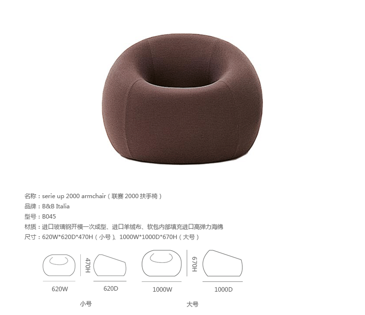自从Up系列1969年面世以来,就成为一款最杰出的设计。此系列七款大小不一的坐具给人们以非凡的视觉冲击,让它们显得与众不同。Up5是此系列中最著名的一款,一个像女人的坐具与一个球形的脚凳连在一起,似乎要让女人屈服。其由意大利著名华体会体育官方在线官网Gaetano pesce设计,外形模仿女性性感的曲线轮廓,而且为了让使用者坐在上面能感受到超级舒服的感觉,特意将性感曲线的各个部位都加以放大。目前有UP5与UP6两种型号,适用不同体型的人。