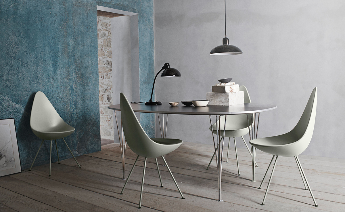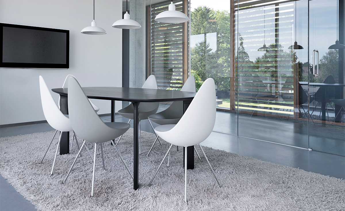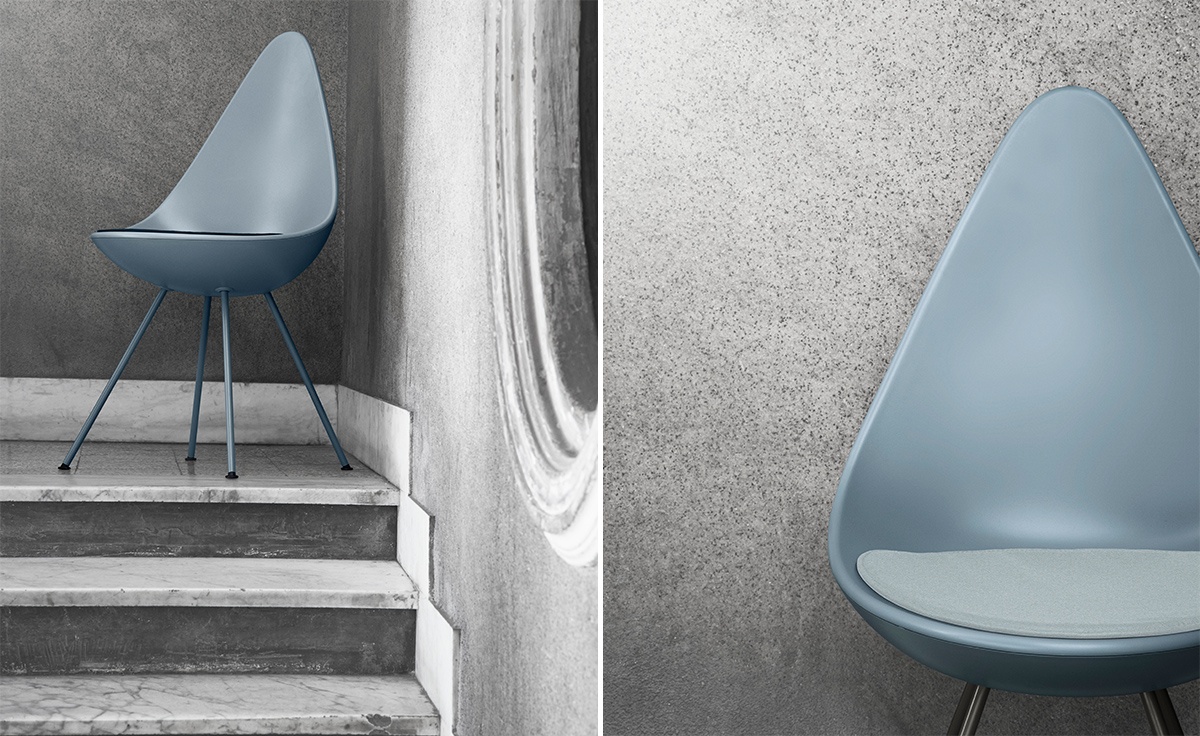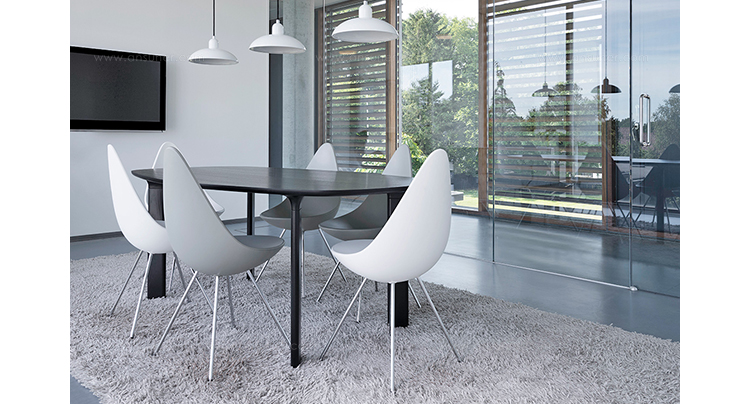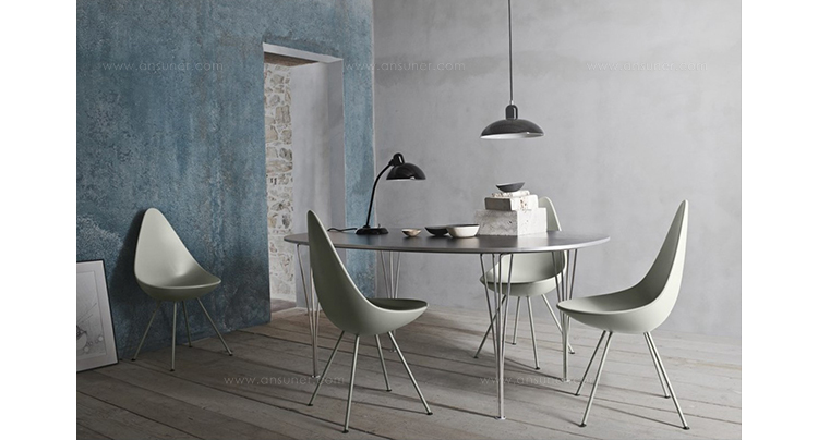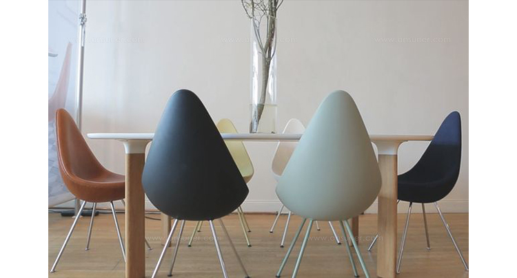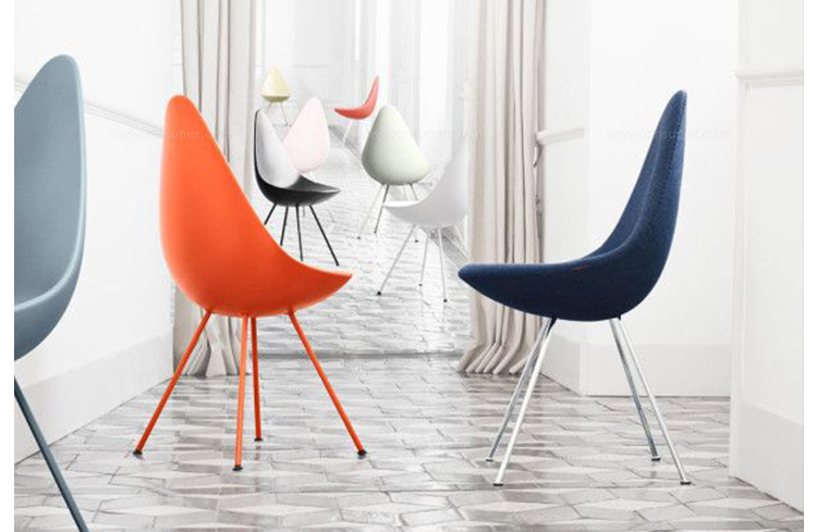 "“水滴椅”是由阿恩·雅各布森于1958年,在传奇的雷迪森在哥本哈根皇家酒店设计的,是他的杰作的一部分。“水滴椅”的设计原型为天鹅和鸡蛋,专门为酒店设计,数量非常有限。