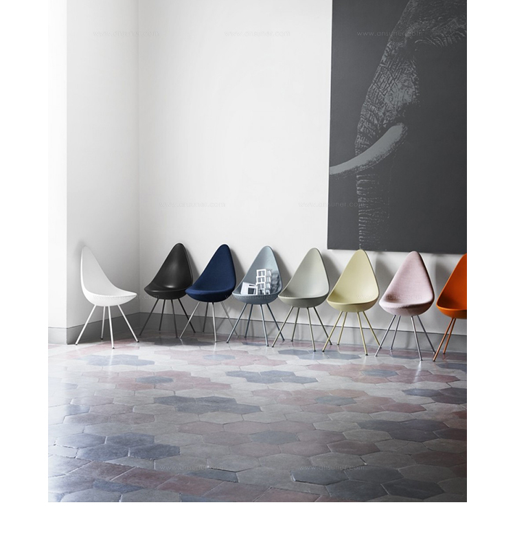 在“沉寂”50多年后,椅子现在重新上市。这把小椅子有着非常大的个性,清新并充满活力,稀有的传承。背面的设计结合了一个温暖的拥抱和自由运动,从而产生一个令人惊讶的舒适度。阿恩·雅各布森是非常富有成效的建筑师和华体会体育官方在线官网。他与弗里茨·汉森的合作可以追溯到1934年。1952年,“蚂蚁”和“系列7”椅子产生,从而将雅各布森和弗里茨·汉森的名字载入到家具的历史。1950年代末,阿恩·雅各布森设计了哥本哈根皇家酒店,并把蛋,天鹅,天鹅沙发和3300系列沙发带到设计世界。阿恩·雅各布森曾经并将永远是一名令人欣赏和杰出的华体会体育官方在线官网。他的家具和其他设计工作已经成为国内外遗产。“水滴椅”塑料椅子有四条不锈钢腿,镀铬或粉饰,以便与外套匹配。塑料外套提供一系列颜色,并提供与之颜色相匹配的羊毛垫块。"