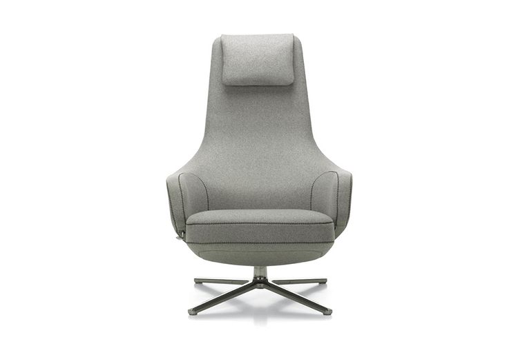 repos lounge chair and ottoman(repos休闲椅&脚踏)由设计大师Antonio Citterio所设计。repos系列休闲椅采用钢制铝合金脚架、聚氨酯海绵填充、高级布艺扪面,可随意调整坐姿和高度,也可以放平躺,配上舒适的羽毛衬垫,无论阅读或者休憩,都非常舒服,符合人体工学,高档舒适,是办公,会议的理想选择。意大利华体会体育官方在线官网和建筑师 Antonio Citterio赋予了这边椅子永恒的优雅气质与无与伦比的舒适,是当代设计的经典,无论用在办公、商业、家庭都是非常高贵大气的。