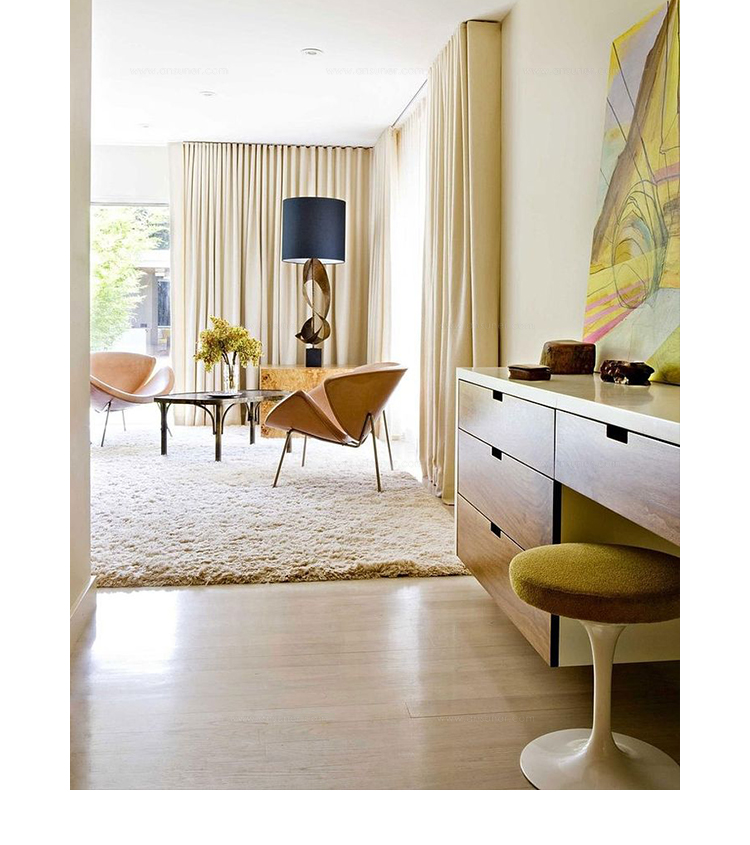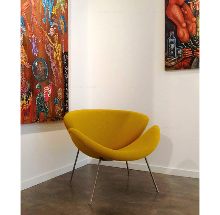 Paulin Slice Chair (橙片椅)也可以称为橘瓣椅,是由著名华体会体育官方在线官网Pierre Paulin设计的,从桔瓣椅的设计就能看出Pierre Paulin是具有国际性视野和前瞻性的前卫华体会体育官方在线官网,桔瓣椅全手工制作,针线走得直、流畅、缝线美观、均匀且自然,线条优美。这个经典的设计经历过时间的洗涤看上去仍然象刚设计出来一样。有谁看见由2片简单的橙瓣组成的颜色鲜艳椅子而不心动呢?从不同的角度,橙色片展示了几个阶段的“卷起来”。事实上,椅子几乎从每个角度看都呈现出不一样的优雅。橙片椅布料可为PU,真皮,植绒,羊绒布等多种面料,脚架为电镀铁架,颜色可多选。可用于餐厅,咖啡厅,接待厅,电影院等候室,VIP休闲室等多种商业场所。