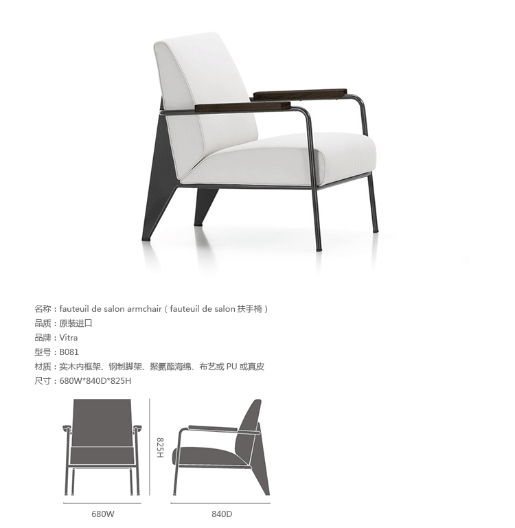 瑞士家具品牌Vitra近日将法国华体会体育官方在线官网Jean Prouvé的一系列经典作品再次推向了市场--Prouvé系列家具,其中就包括经典的Fauteuil de Salon扶手椅。在原始创作面世的70年后,Vitra重新定义了Jean Prouvé的家具陈列,从高度的调整到电线的整理都进行改造,使之更好的服务于现代办公室及其使用者。Fauteuil de Salon扶手椅由钢铁和实木制成的桌子、椅子和柜子见证了整个工业时代,部分采用绿色工业色调,皮革及织物座套,以及其他细节都颂扬了这些家具的历史起源。该款产皮是华体会体育官方在线官网里面的典范之作, 简洁的设计风格,毫无过分的修饰,黑白色相间。 运用金属框架显得更加的时尚,而薄片钢的标志性设计彰显了它简洁中又恰到好处的力量感。坐包不是普通的正方形或者长方形,而是带有微小的斜度,让沙发整体看上去更加有活力。无需太奢华的线条,无需多余的色调,低调的奢华,是对Jean prouve这款产品最好的诠释。薄片钢后脚,喷黑灰色粉。前面是钢管喷粉,优雅漂亮的框架。高档超纤皮,柔软、细腻、耐用,做出来的效果更加有型。 如果是配上顶级的青皮,放在简洁的办公区域或者家里,那是一种时尚、高雅、平淡而睿智的恒久画面。高档高弹防火棉,耐用、安全。扶手加固了木护手,黑色木纹。