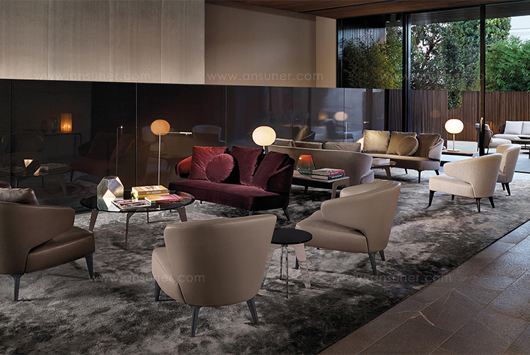阿斯顿沙发、靠椅、脚垫与坐卧两用沙发拥有呼之欲出的复古韵味,结合唯美线条、轻盈廓形与精准封套,淋漓尽致地展现出超凡卓绝的手工技艺。