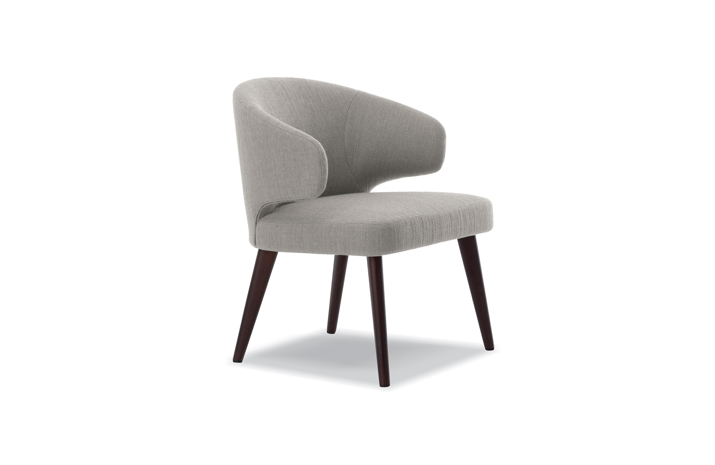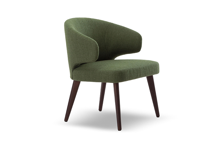 沙发的围裹式靠背特色十足,扶手线条与之完美呼应,以蓝灰色调呈现的压铸铝合金支脚尽展精致设计之美。