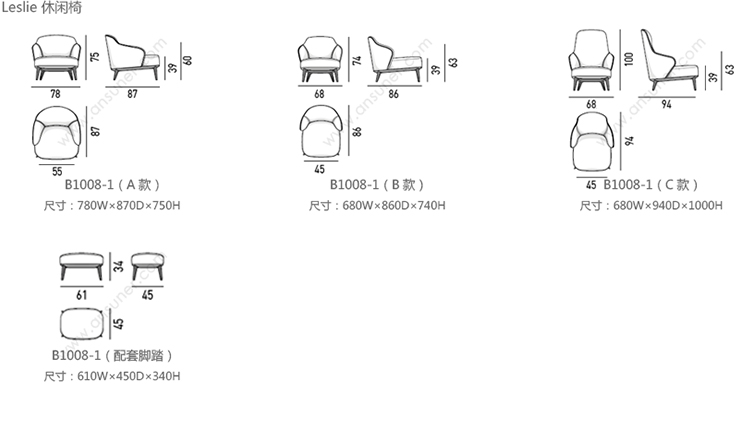 Leslie 休闲椅 系列尺寸/示意图