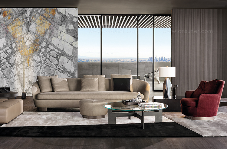 精益求精的缝线展现出Jacques扶手椅和沙发的曲线,圆润的造型与Lawrence沙发严谨的几何造型形成别具一格的对比效果。