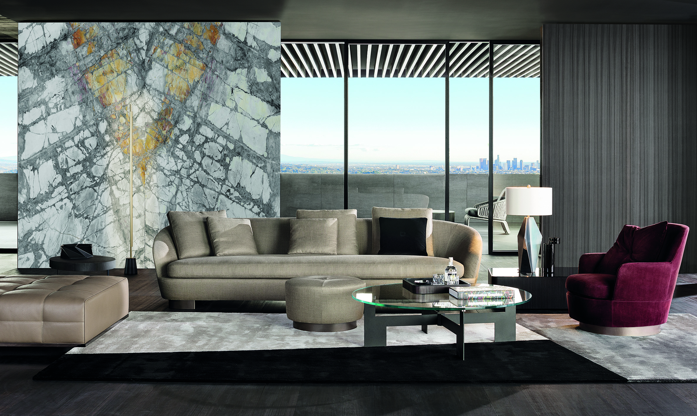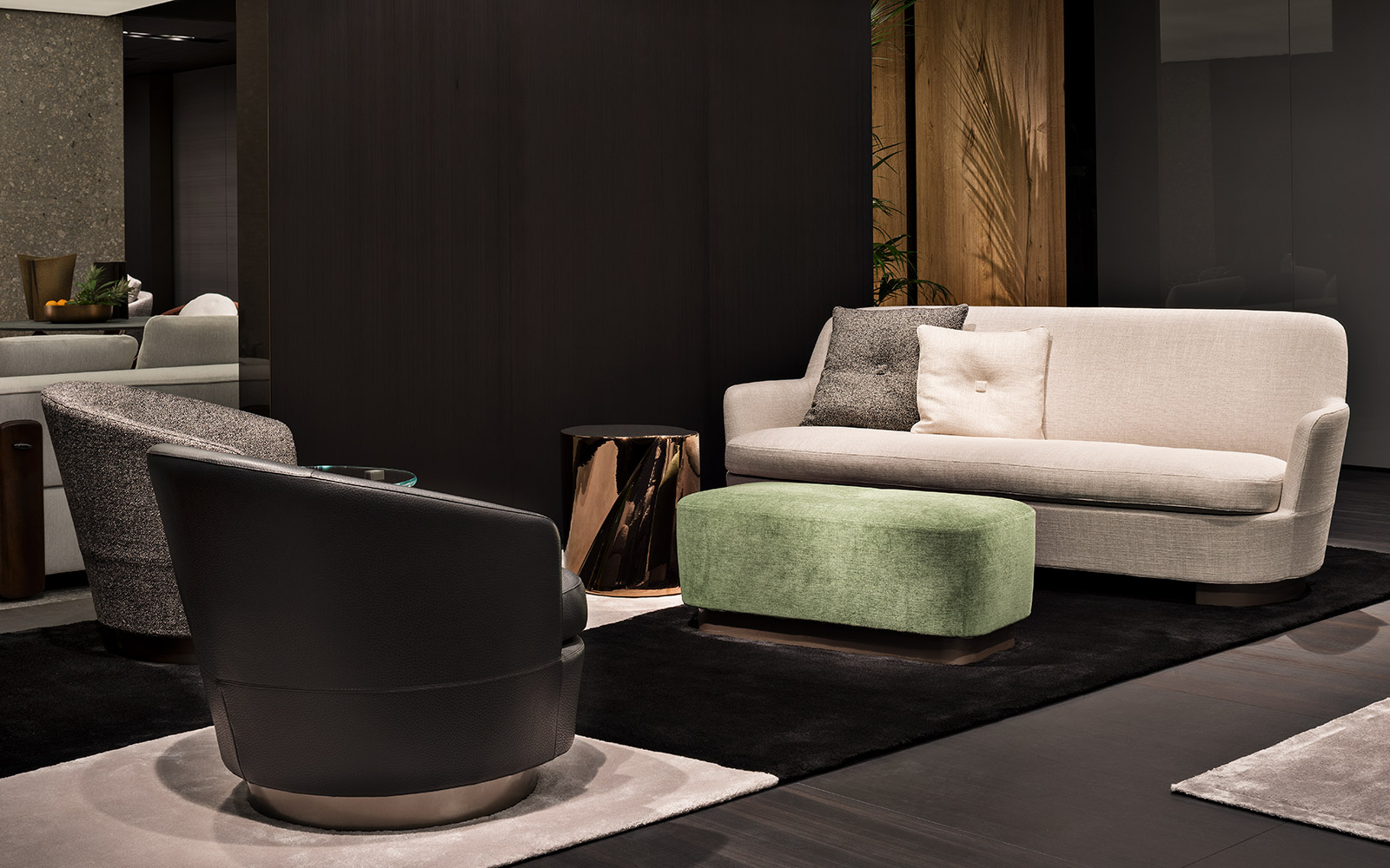 精益求精的缝线展现出Jacques扶手椅和沙发的曲线,圆润的造型与Lawrence沙发严谨的几何造型形成别具一格的对比效果。