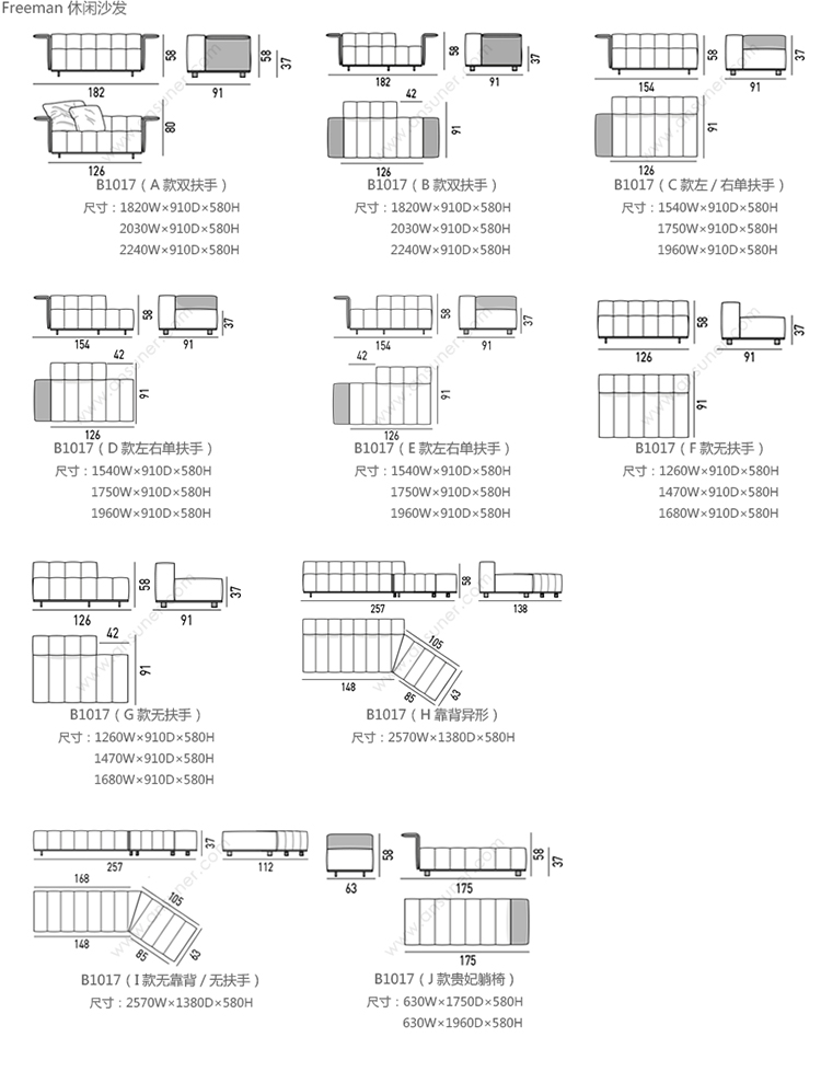 Freeman 休闲沙发 系列尺寸/示意图