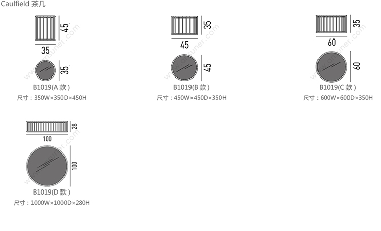 Caulfield 茶几 系列尺寸/示意图