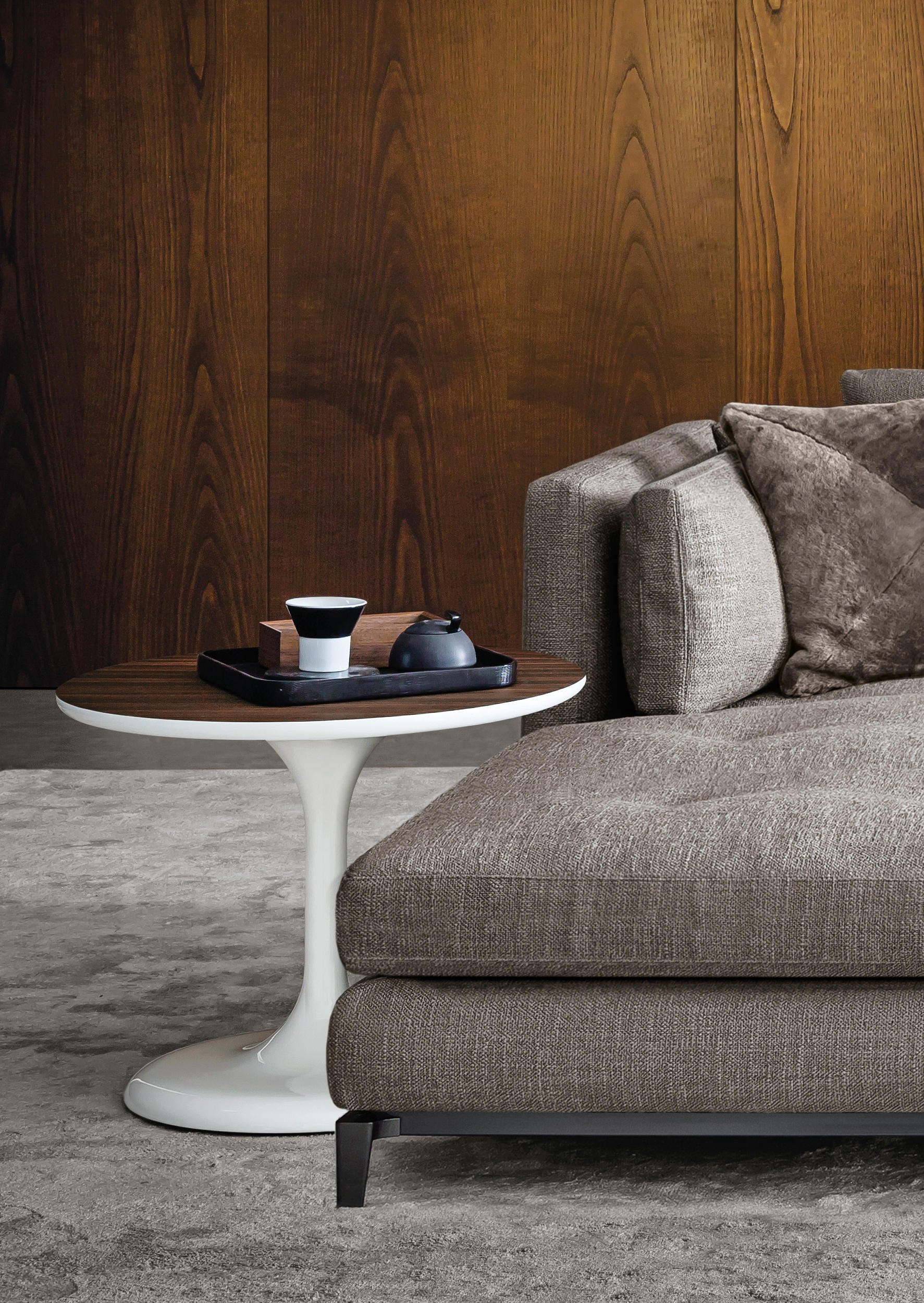 Neto是一组咖啡桌系列,有不同的高度可供选择,此外还有三种直径的台面以及三种不同的材料-颜色组合。如果基座和台面使用相同的颜色亮光漆(白色或Pewter色),以此来展现造型的纯粹感;另外,无论是基座为Pewter色,台面为Marron Damasco大理石的版本;还是基座为白色或Pewter色,台面为亚光漆面的花梨木的版本,两者都强调木材和石材这两种材质的珍贵性。“全白”版本则展现出Neto咖啡桌的可塑性。在亚光漆面的花梨木版本中,台面下方使用与聚氨酯基座相同的颜色,采用Minotti Studio的独家设计。技术与设计内涵在咖啡桌上展露无遗,体现出十足的个性,使其能够搭配系列中的任何沙发座椅。这款极具功能性的休闲凳属于Neto家族,基座材质为聚氨酯,漆面颜色为Pewter色,上方部件则添加填充物,包覆Minotti独家系列中的布料和皮革。Neto休闲凳是搭配LANE边几的理想之选,实际上,它也是一款万能单品,在任何环境中都能自如地展现魅力,与系列中的任何产品搭配都毫无违和感。