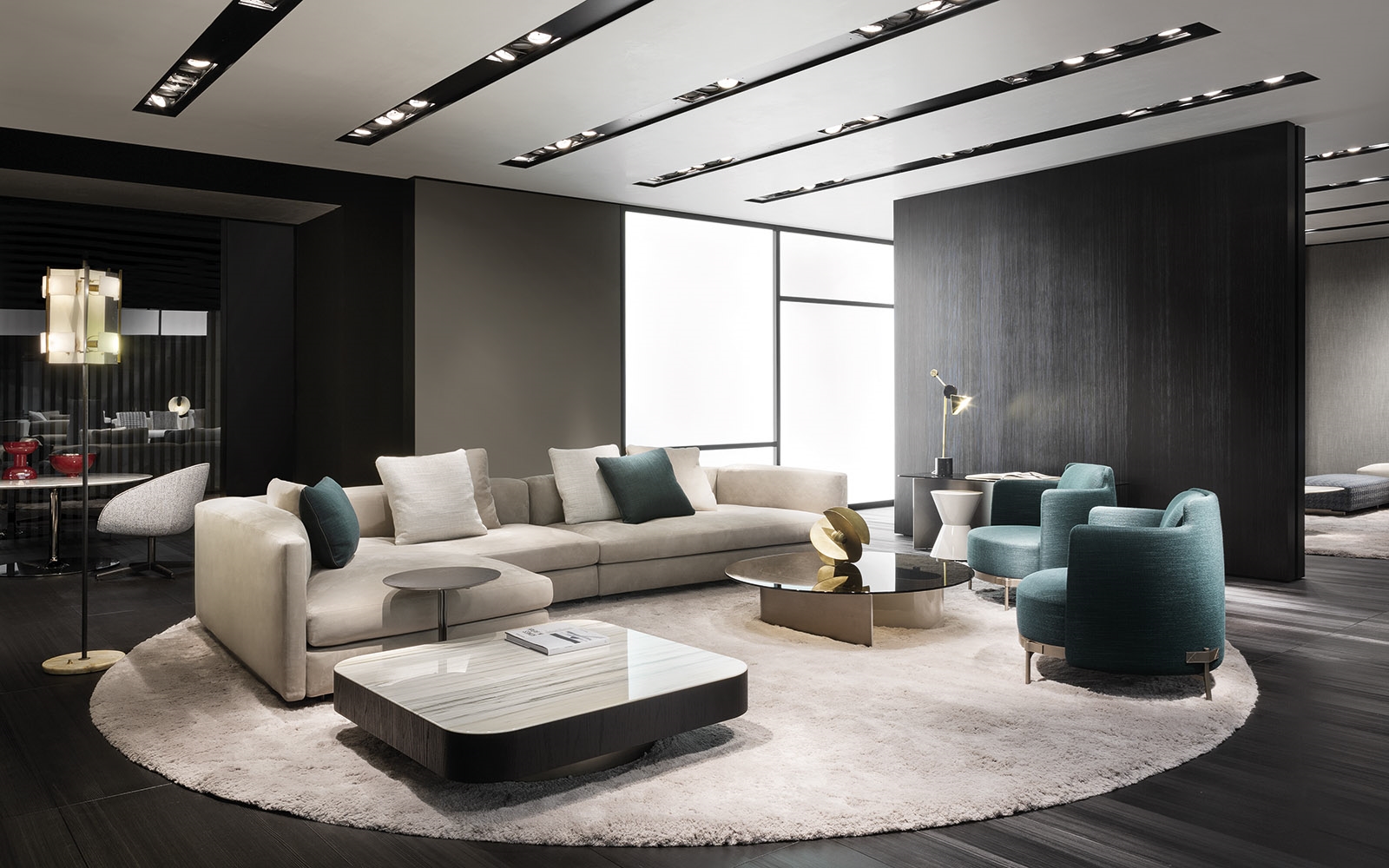 Bender一家拥有一系列圆形、矩形、方形的桌子和不同高度的控制台,可以与客厅的各种装饰方案进行对话。