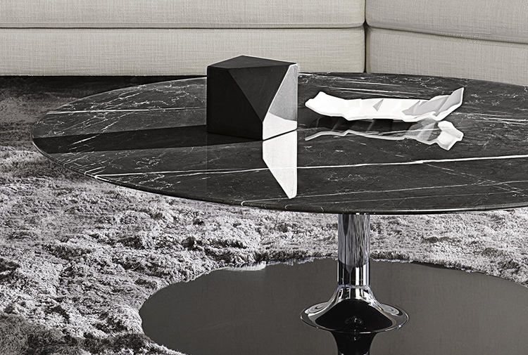 它在客厅和侧桌的版本中都有构思,它的特点是在卡拉卡塔或石灰色大理石上有一个珍贵的顶部。