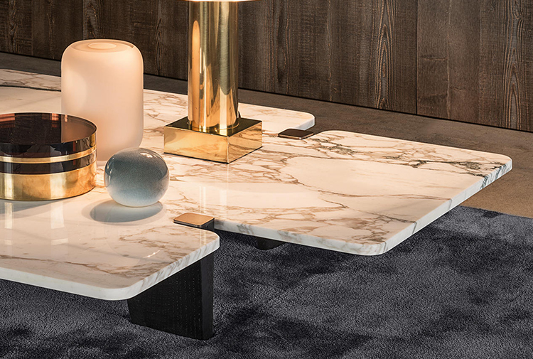 大理石是具有永恒魅力的材质,也为这组边几系列带来了优雅独特的灵感,产品摆放位置灵活多样,饰面种类繁多,此外还有多种造型和尺寸可供选择。桌面造型别具一格,支撑腿为黑色漆面的实心拉丝橡木。地面支撑的末端以及支撑腿顶端的部件采用铜色金属材质,这一细节设计为这款个性十足的产品平添一份精致的优雅感。饰面有不同材质可供选择:从米灰色的鲍迪豆木饰贴面,到精致考究的Calacatta或Bardiglio Nuvolato大理石台面,还有极具现代感的Sand色和灰褐色的亮光漆面。圆形桌面的边几样式不仅有米灰色的鲍迪豆木饰贴面,还有蓝绿色、花岗石色和Sand色的彩绘玻璃饰面。除了边几以外,Jacob家族的成员还包括一款写字台,其桌面样式有Sand色和灰褐色的亮漆饰面,还有米灰色的鲍迪豆木饰贴面。写字台还配有哑光黑漆的木制抽屉。
