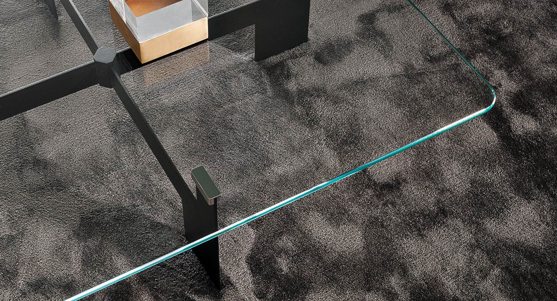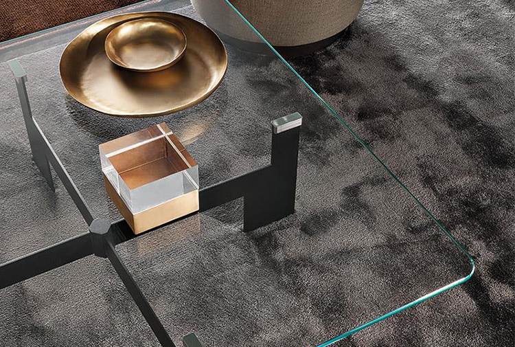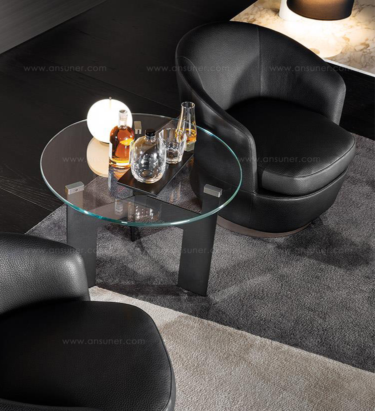 超亮玻璃台面采用圆边设计,突显黑色压花漆面金属基座的精致感。