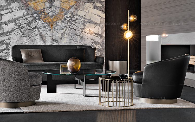 边几的直径为30厘米,其材质只推出淡金色亮光金属表面的版本,极具装饰风格,同时又不失现代感。