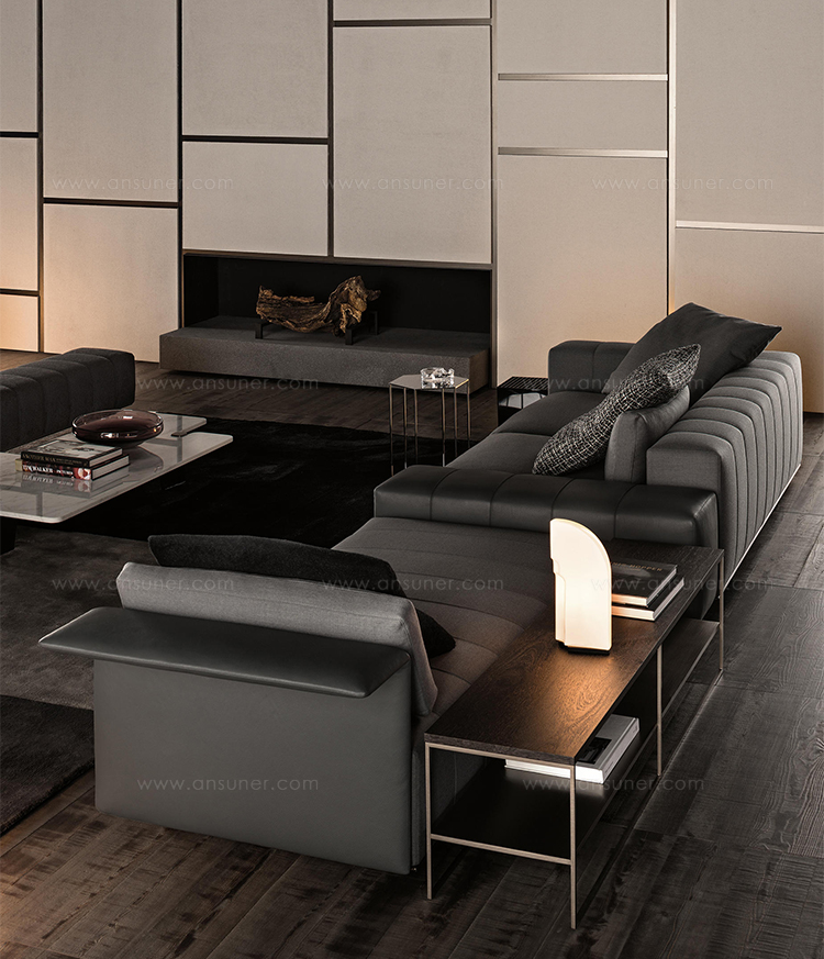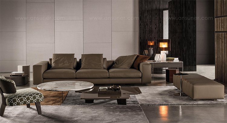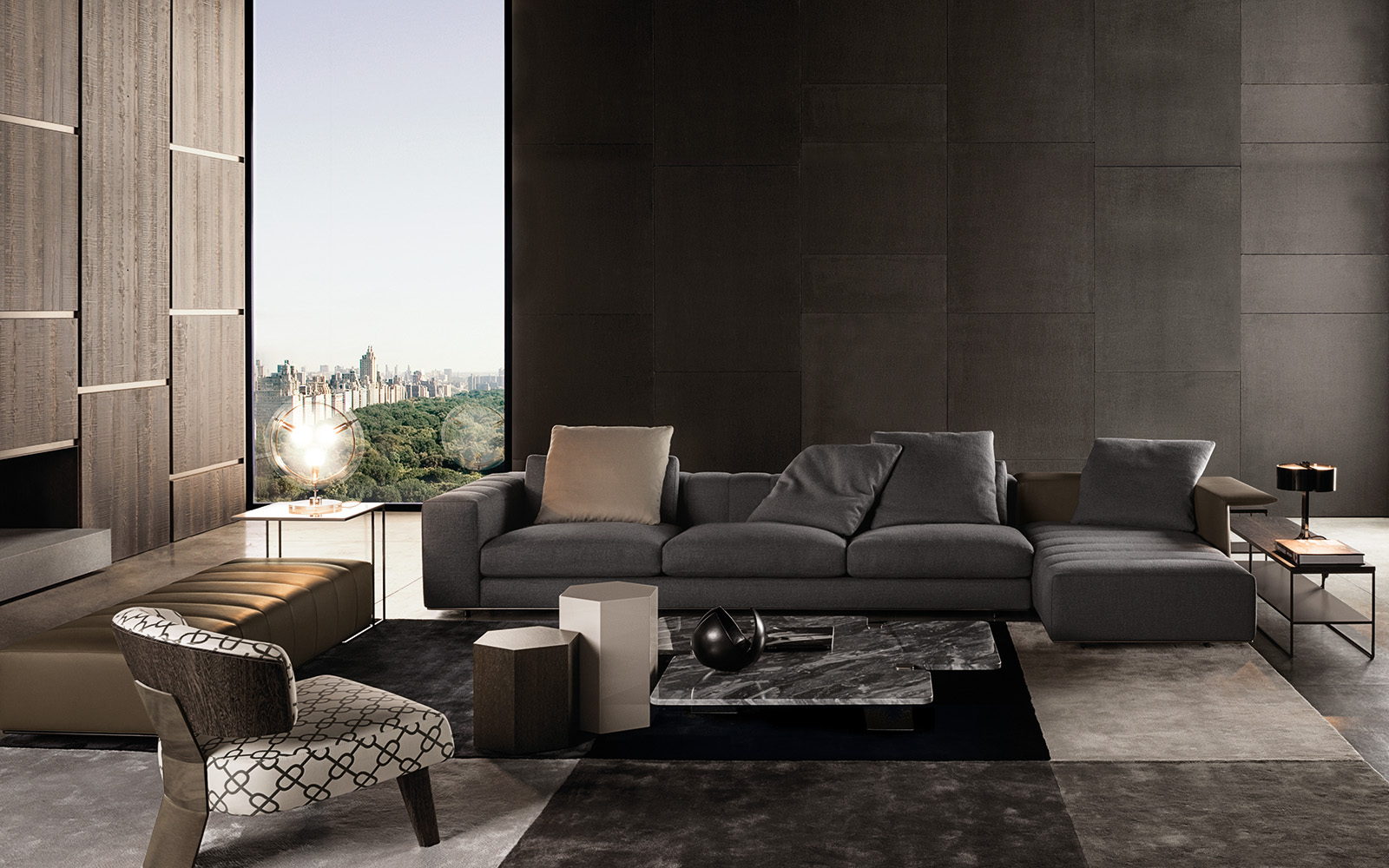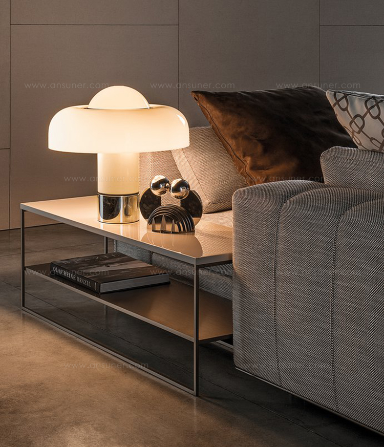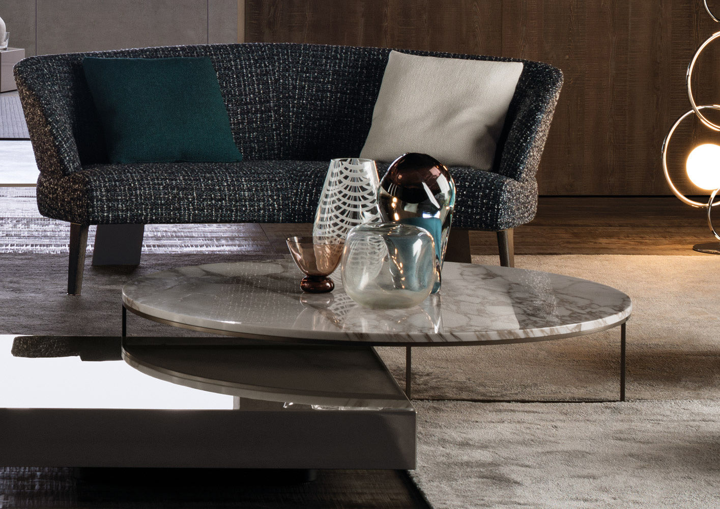 Calder家族有各种尺寸的边几和边桌,这一组全新的设计方案为其带来更为清新时尚的造型。铁架结构如今采用亚光浅铜色的表面。桌面也推出新版本:Sand色亮漆,米灰色的鲍迪豆木饰贴面,Bardiglio Nuvolato和Calacatta的大理石。中间层的桌面也为亚光浅铜漆面的金属。