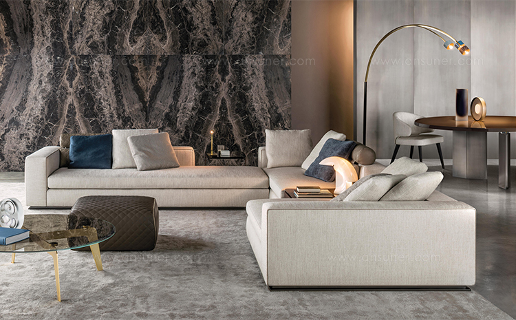 Kirk 木质底座茶几统一以矩形呈现,有三种长度可选。