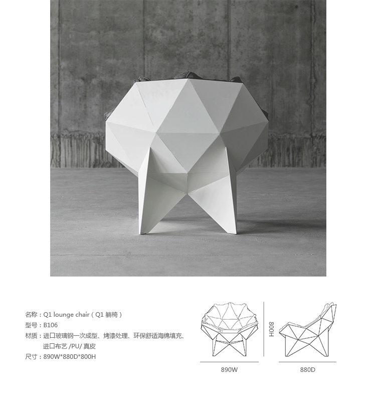 由乌克兰华体会体育官方在线官网Zbroy Svyatoslav和Dmitry Bulgakov合作创办的设计工作室ODESD2设计的Q1 lounge chair(Q1 躺椅)。半球形构思基于巴克敏斯特·福勒(美国哲学家、建筑师和艺术家)球型屋顶设计,这种类似球型穹顶的构造承重能力更大,而且凌厉的线条与舒适的内饰,相得益彰。