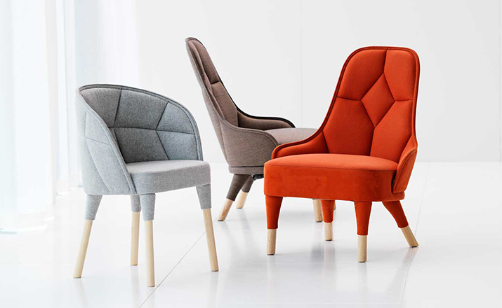 “Emily is our Emma easy chair’s little sister. just like siblings, they are similar but still different. The family likeness can be seen in the needlework: they are both upholstered, but differently pat- terned. The needlework is a function which also creates a powerful idiom. The special technique employed is based on a classical craft, while at the same time occupying the leading edge of technology. Emily is a comfortable chair, equally successful round the dining table and at a conference table.”