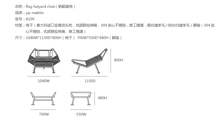 设计于1950年,帆船旗椅的形状和风格最初是由于全家去海滩旅行而构思的。当孩子们在海边玩耍的时候,魏格纳正忙着在沙滩上做一把椅子,以创造一个舒适和放松的地方,在那里他可以享受炎热的夏日。回到避暑别墅后,魏格纳用他在海滩上创作的角度,起草了他的第一张草图。