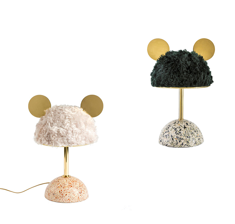 统一的绿色米色水磨石,深绿色软垫灯罩和抛光黄铜装饰,营造出这款俏皮长大的台灯。